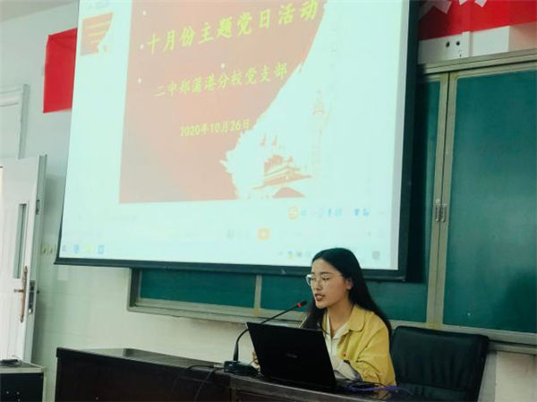 10月27日,第三黨支部開展“學習貫(guàn)徹市委九屆十(shí)二次全體會議精神(shén)”主題黨日活動。支部副書(shū)記張立寬領(lǐng)學相關學習材(cái)料。支部組織委員闞雪楓和宣傳委(wěi)員張勝莉兩位同誌的重點(diǎn)發言贏(yíng)得了(le)同誌們的熱(rè)烈掌聲。最後由支(zhī)部書記褚亞(yà)飛(fēi)同誌作總結講話,他重點強調了(le)兩點:一是一個黨員就是一麵旗幟,黨員做先鋒作示範,群眾就會跟上來,所以91视频网站每位黨員都要加強(qiáng)黨(dǎng)性鍛煉,在師生中發揮好先(xiān)鋒模範作用;二是加強政治理論學習,講好思想政治課,做新時代的“四有”好老(lǎo)師,為把馬鞍山二中辦成人民滿意的學校而努力拚搏。