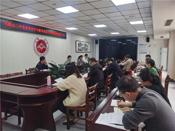 4月26日,馬(mǎ)鞍山二中黨委在行政樓一樓會議室召開黨史學習教(jiāo)育重點工作推進暨黨委擴大會。黨委副書(shū)記聶曉霞主持會議,學校黨委(wěi)委員、各支部書記、學(xué)校中層以上黨員幹部參加了會議。