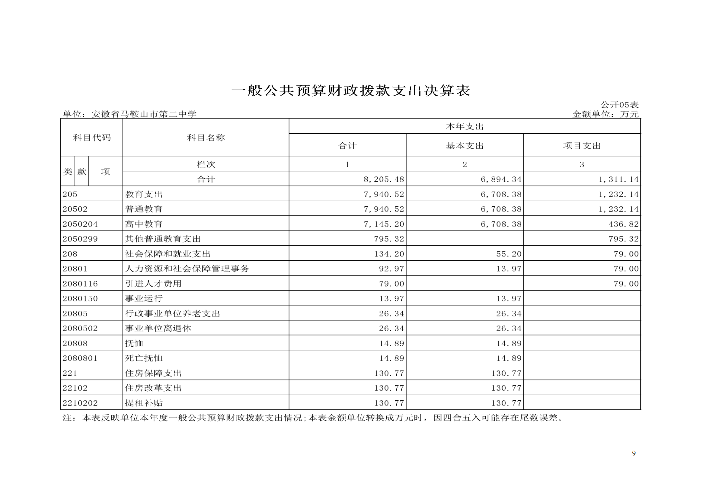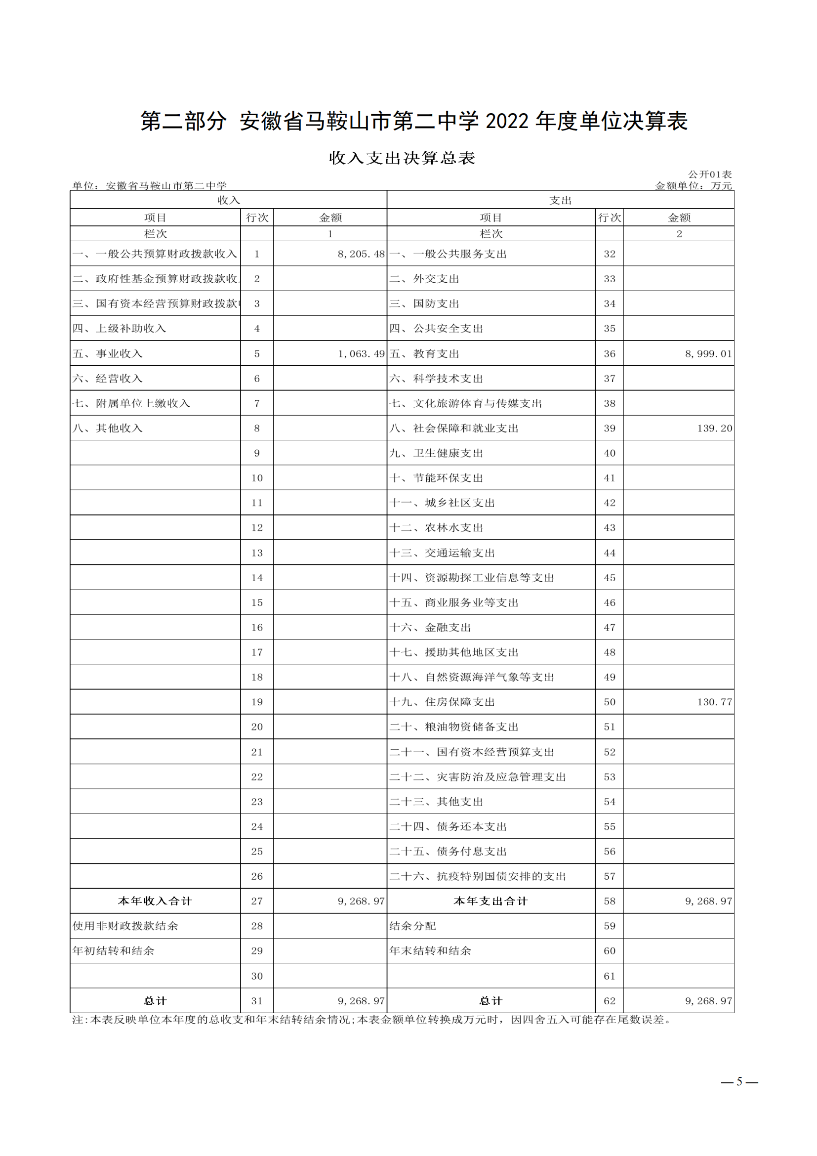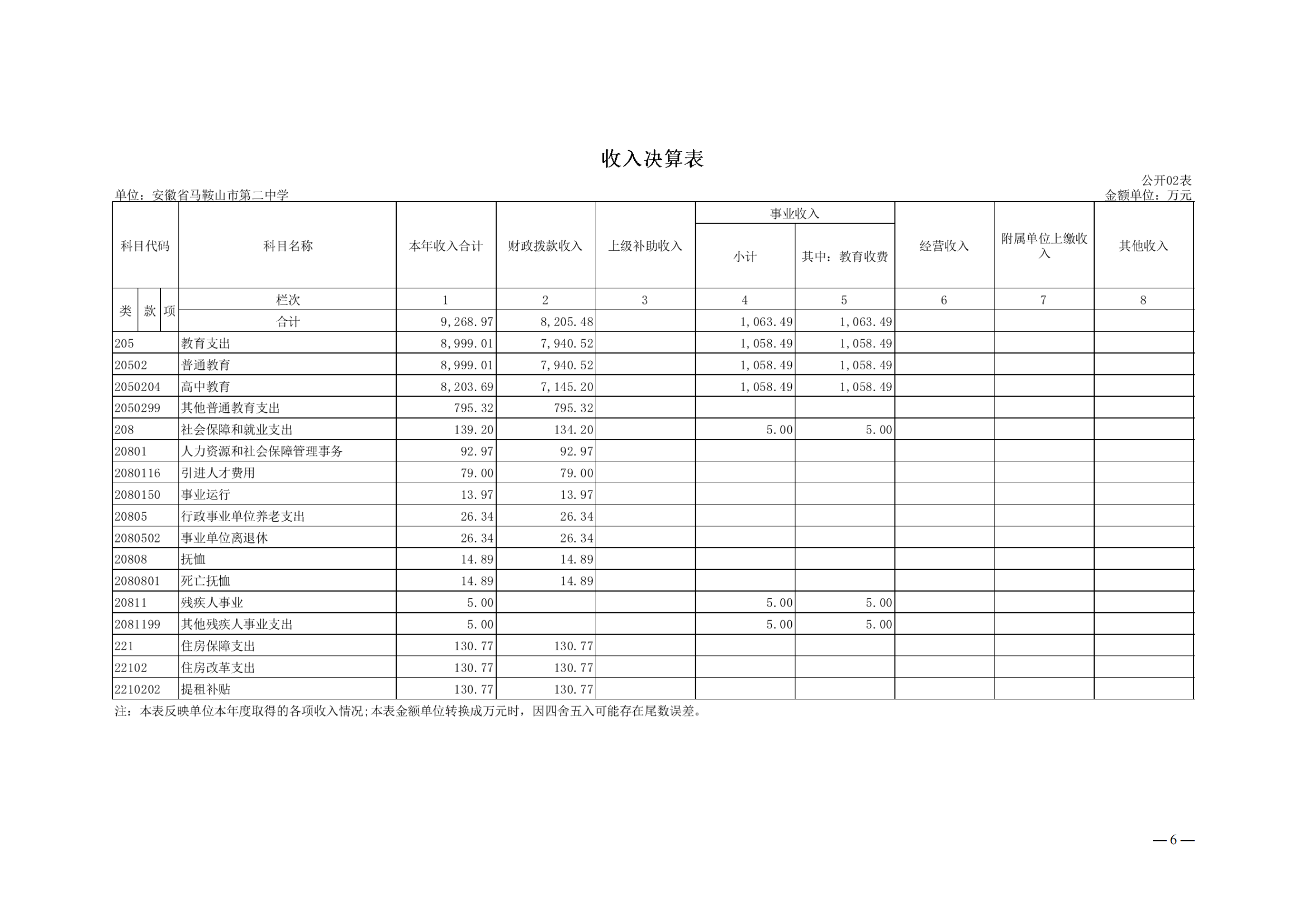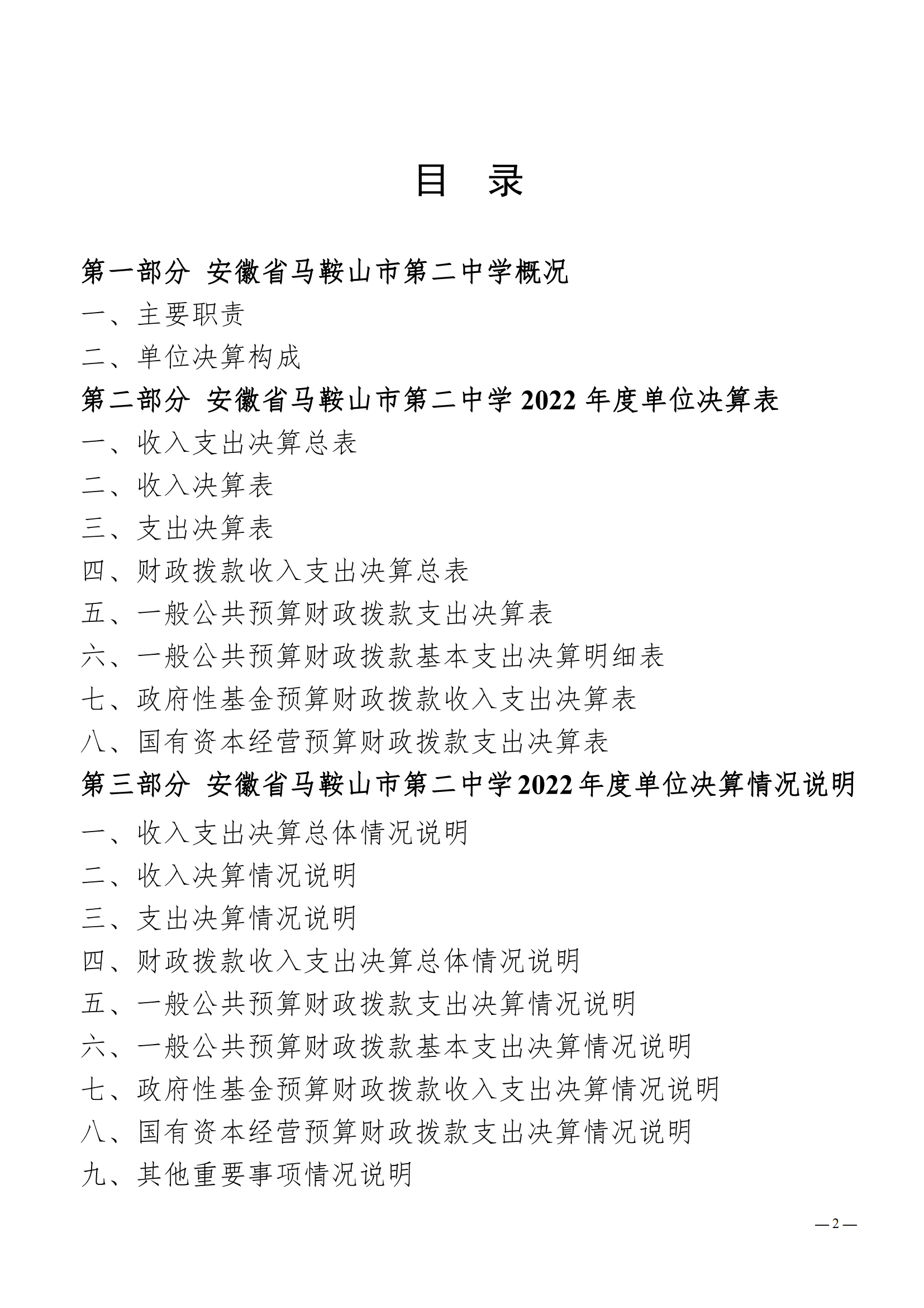 安徽省馬鞍山市第二中學2022年度單位決算(suàn)