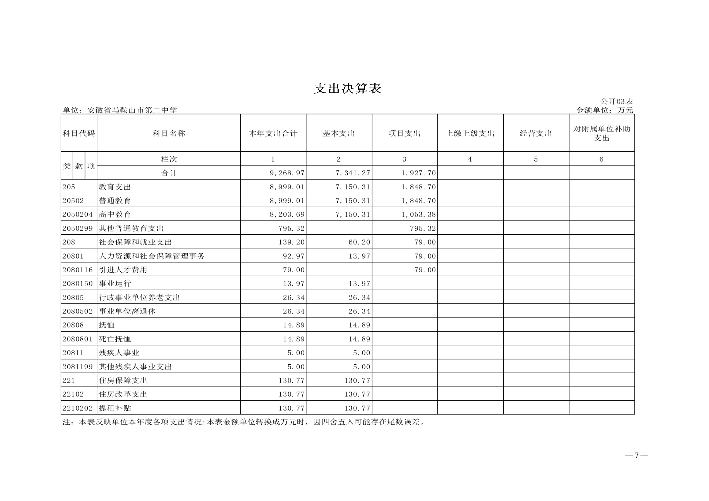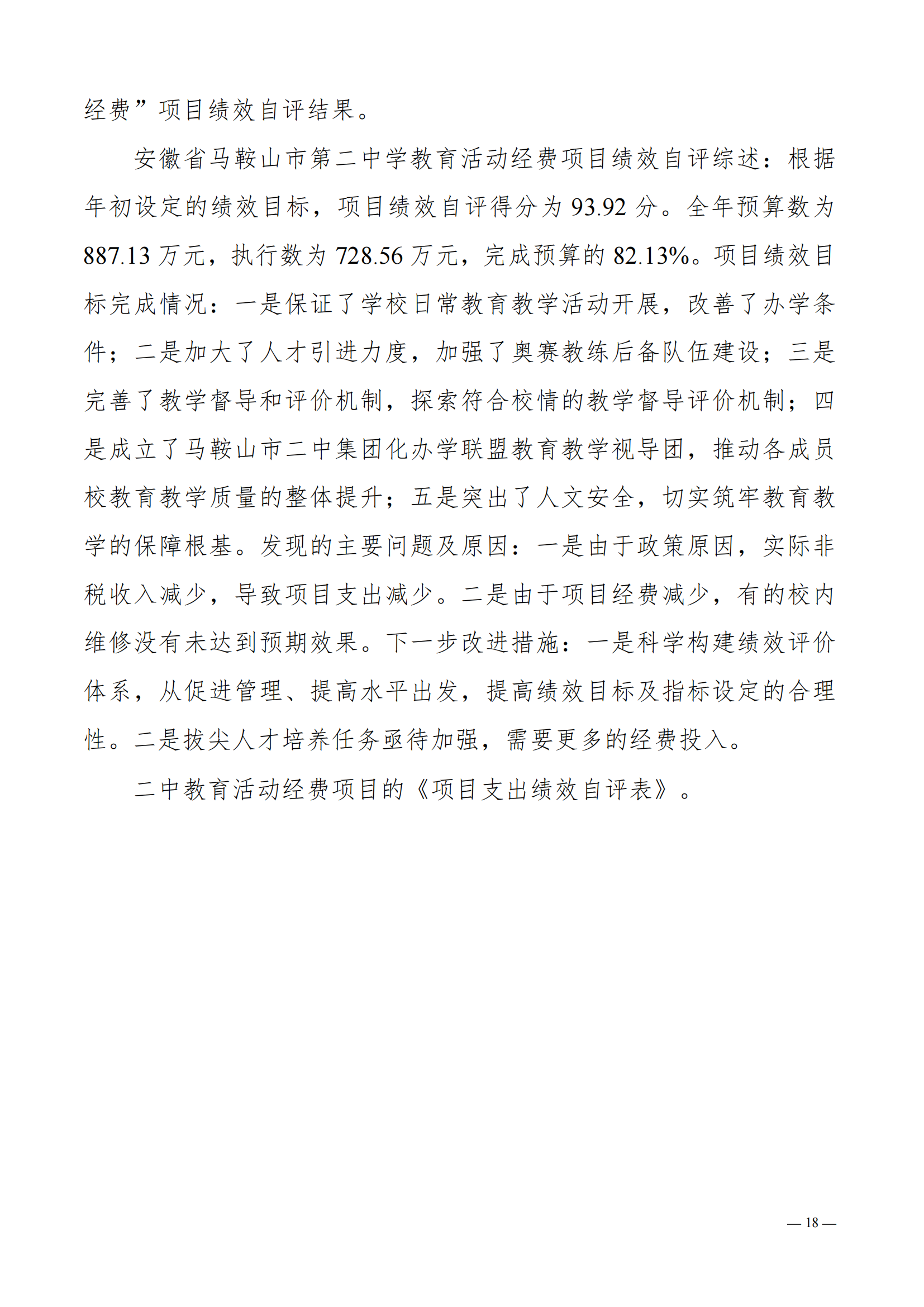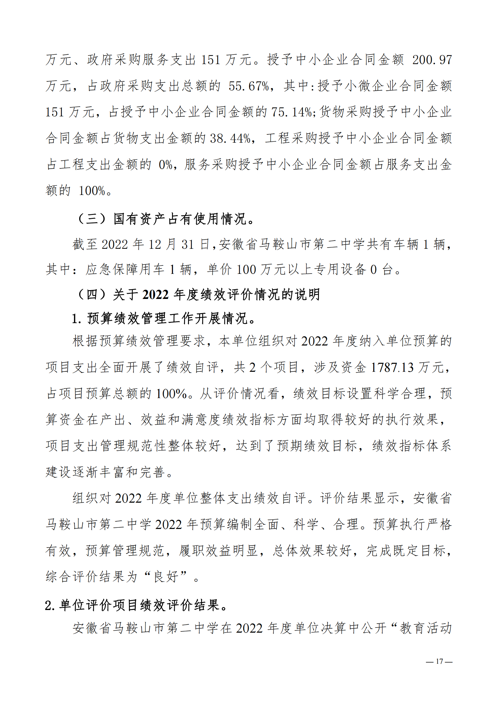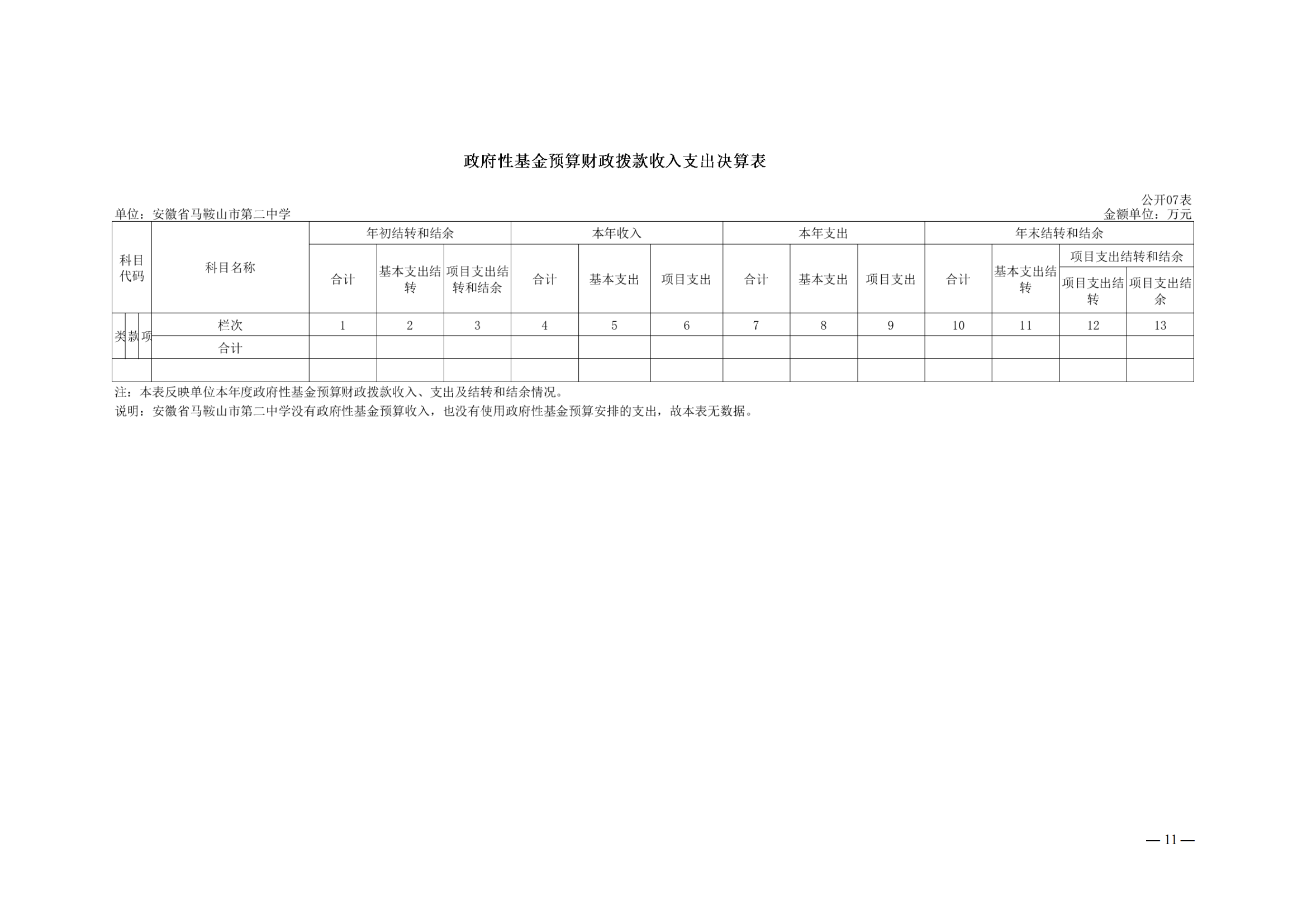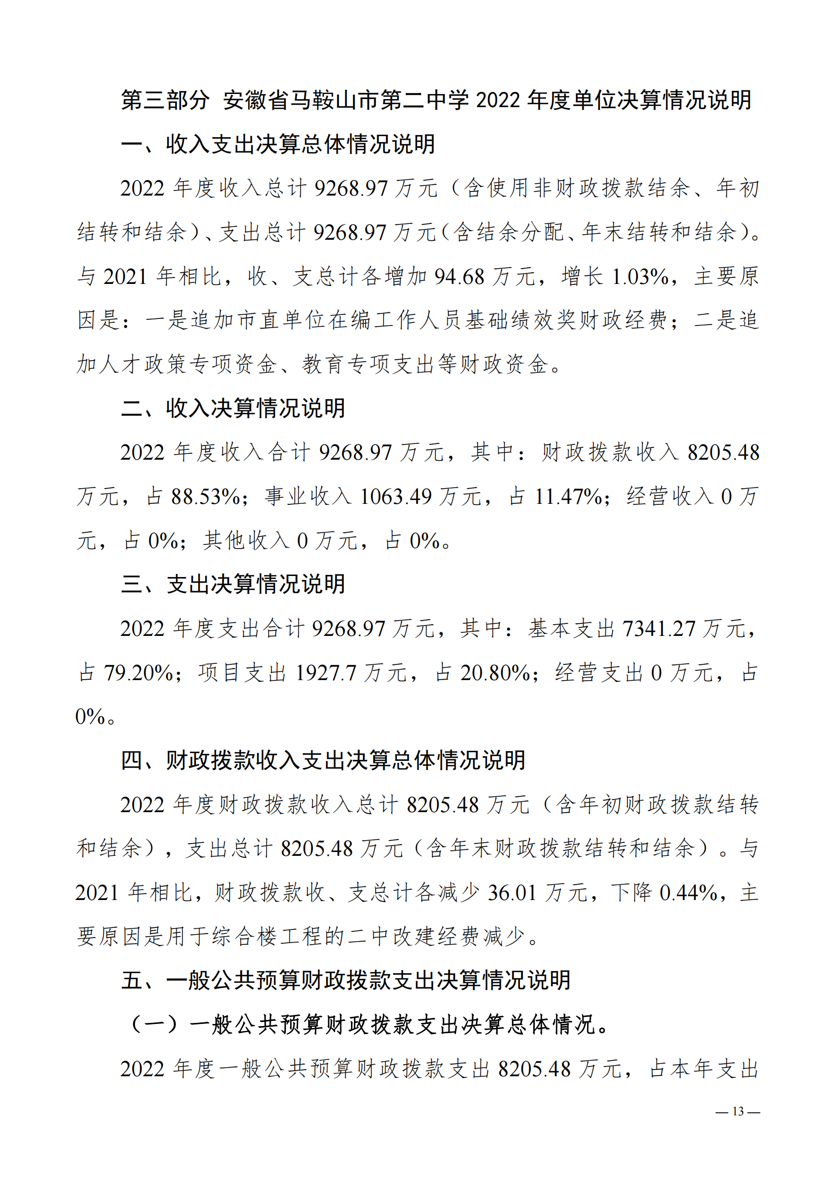 安徽省馬鞍山市第二中學2022年度單位決算(suàn)