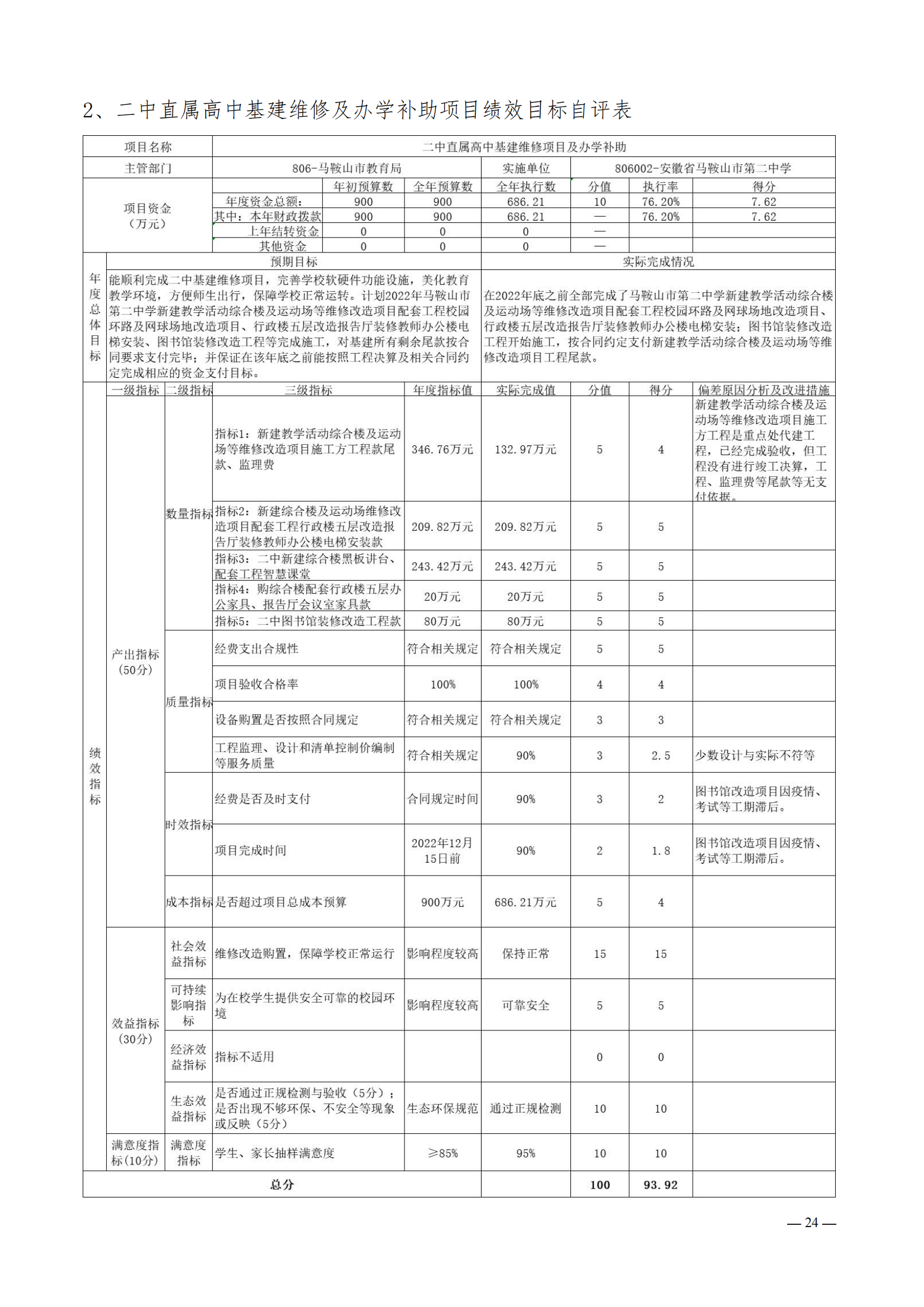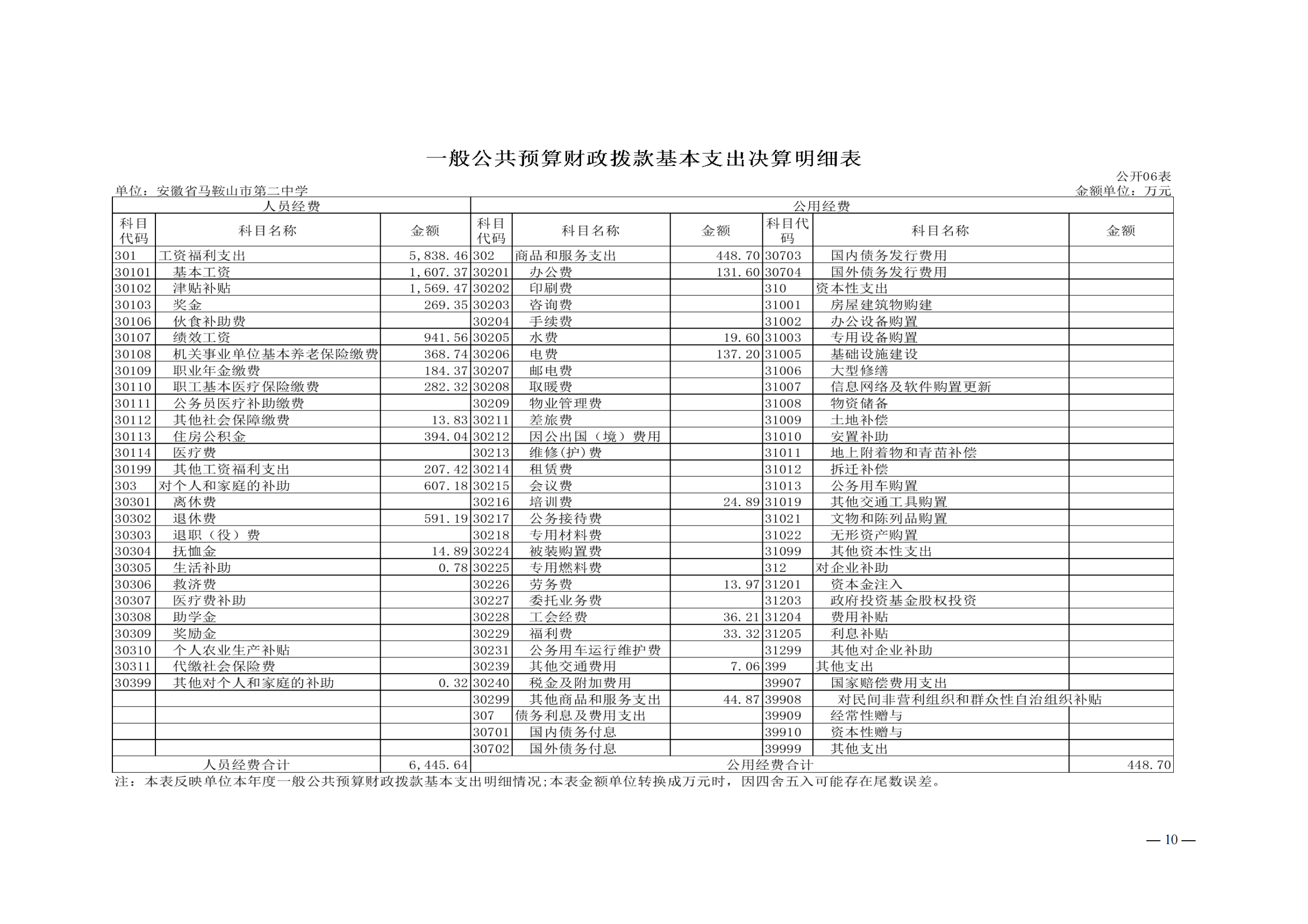 安徽省馬鞍山市第二中學2022年度單位決(jué)算
