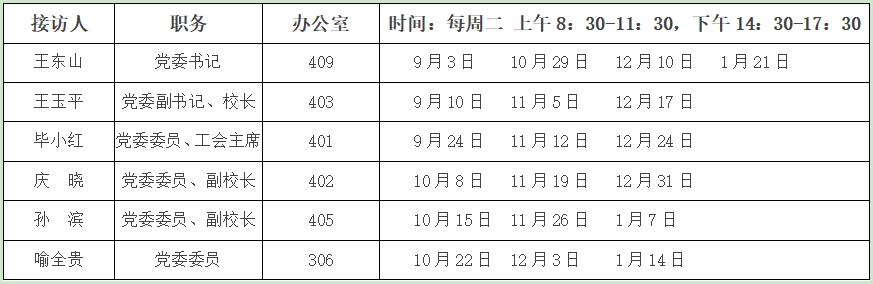 2024-2025學年第一學期“馬鞍山市第二中學校領導幹部接訪日”安排表