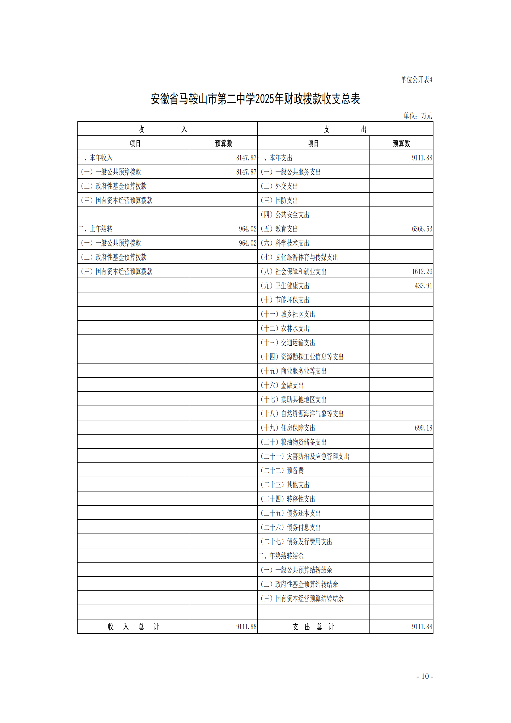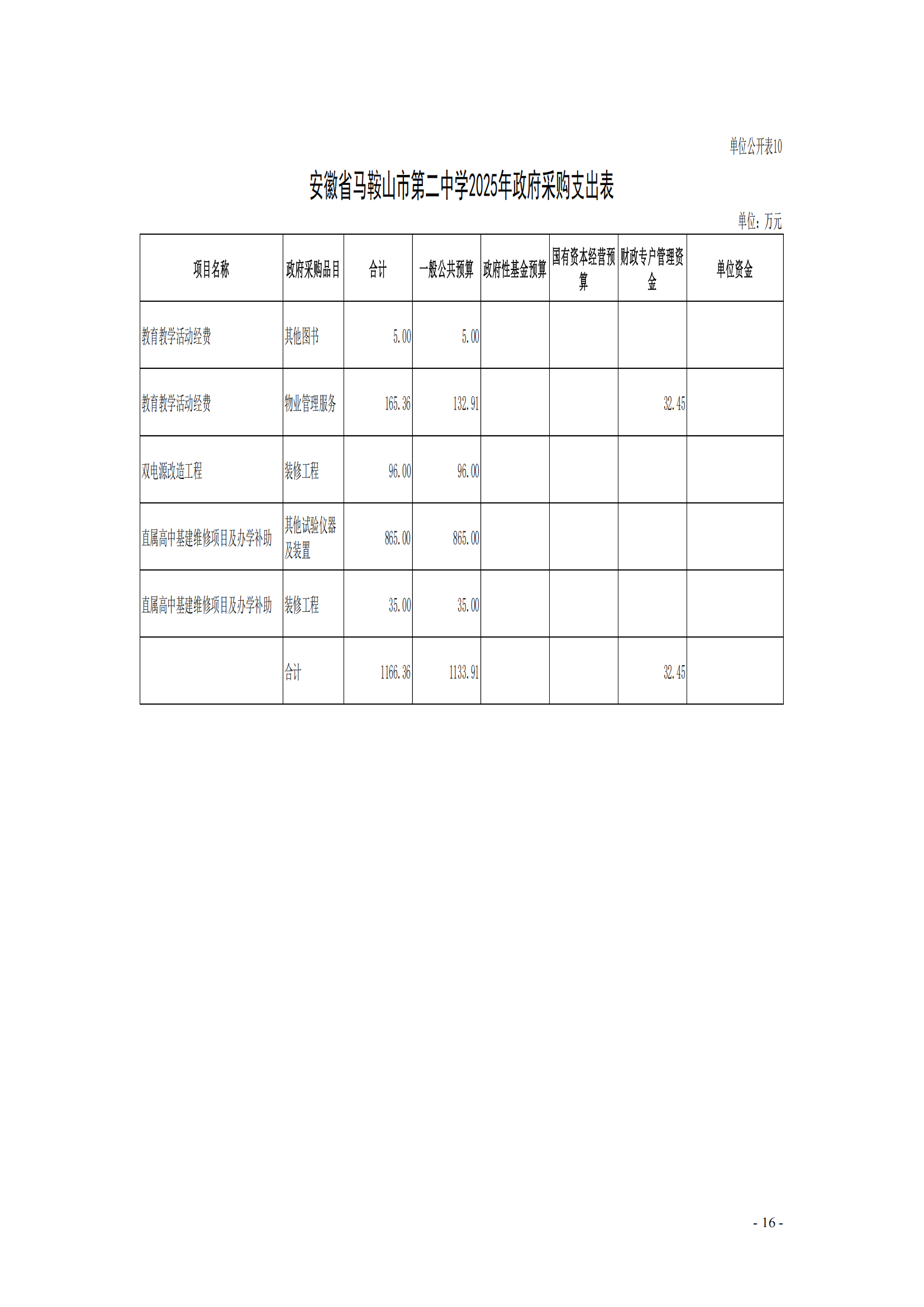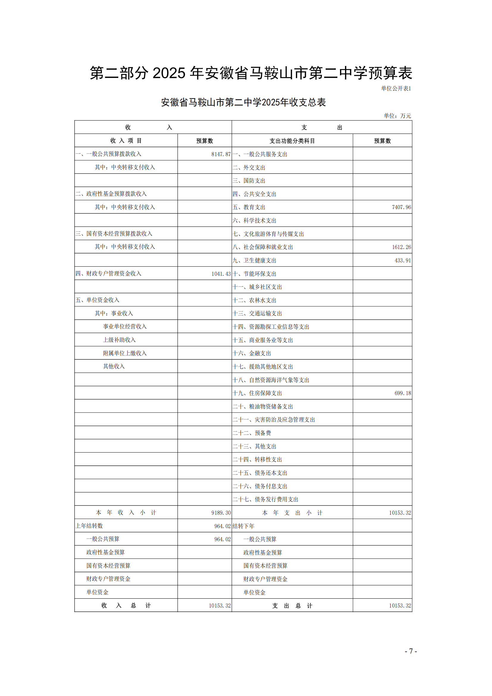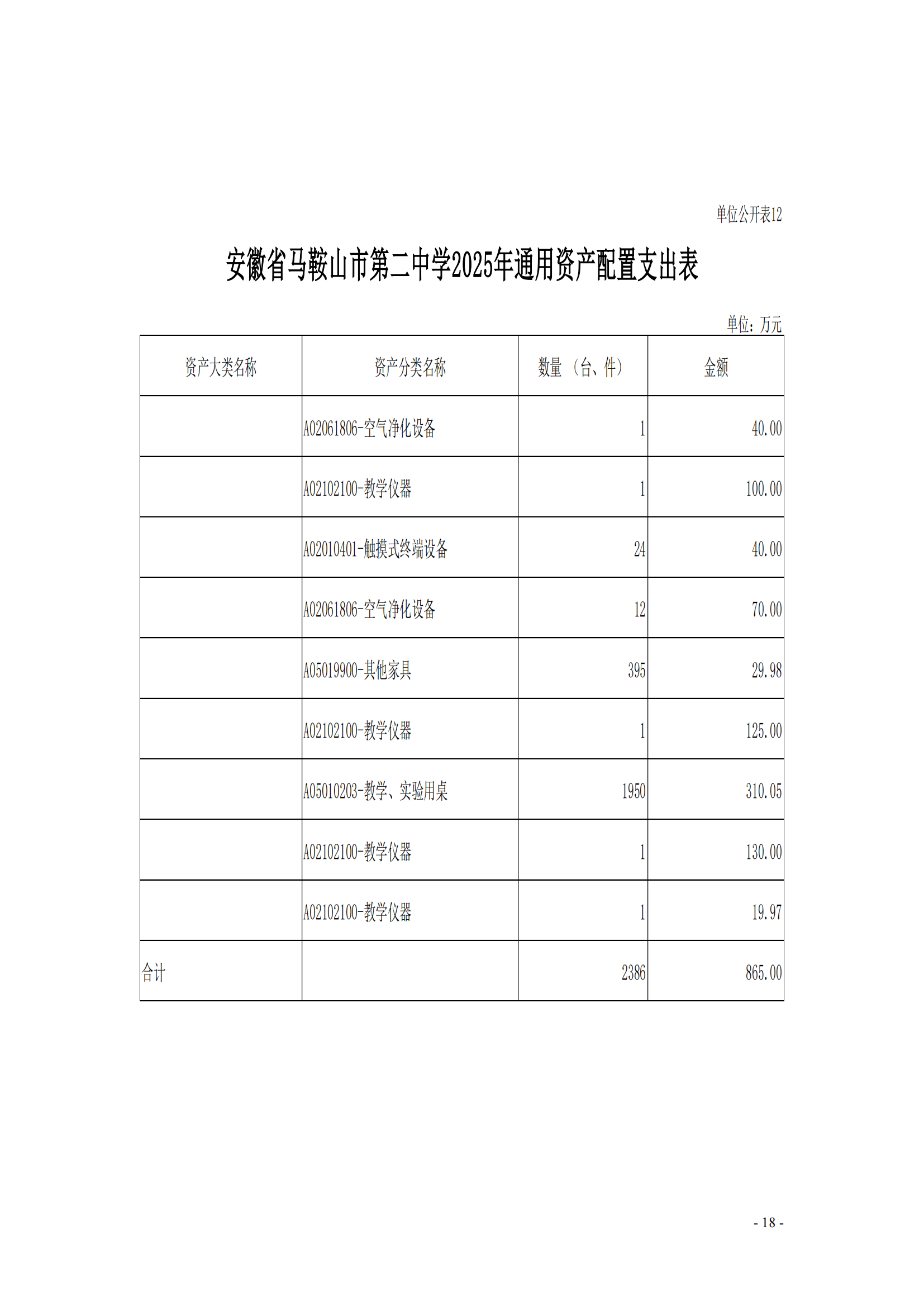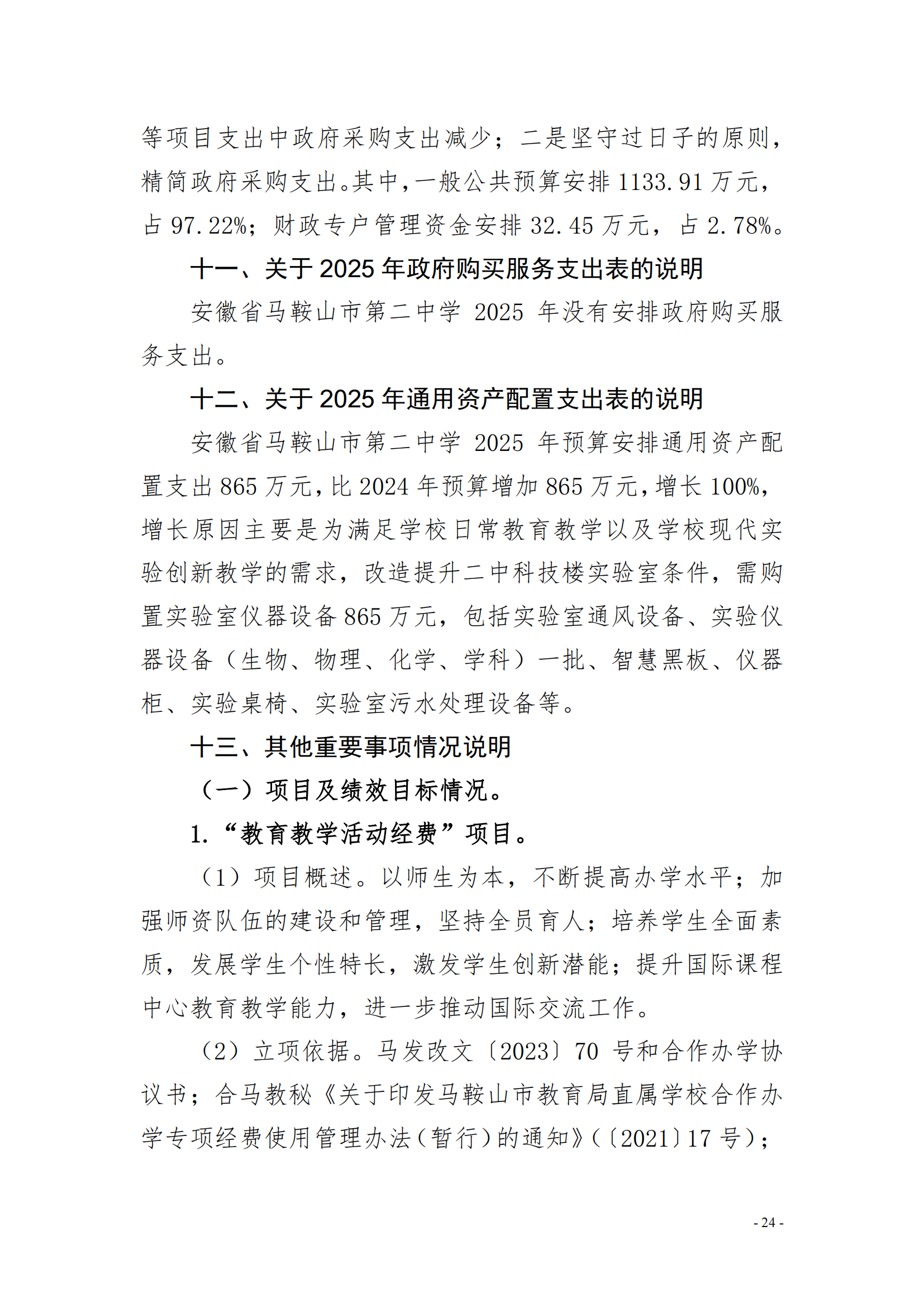 安徽省馬鞍(ān)山市第二中學2025年單位預算