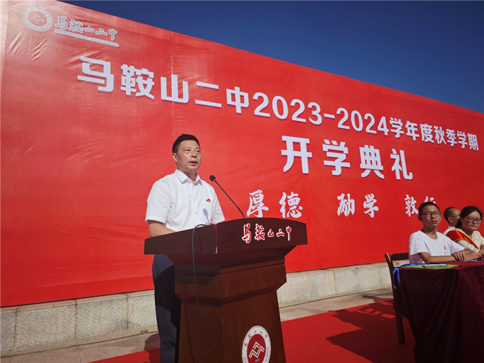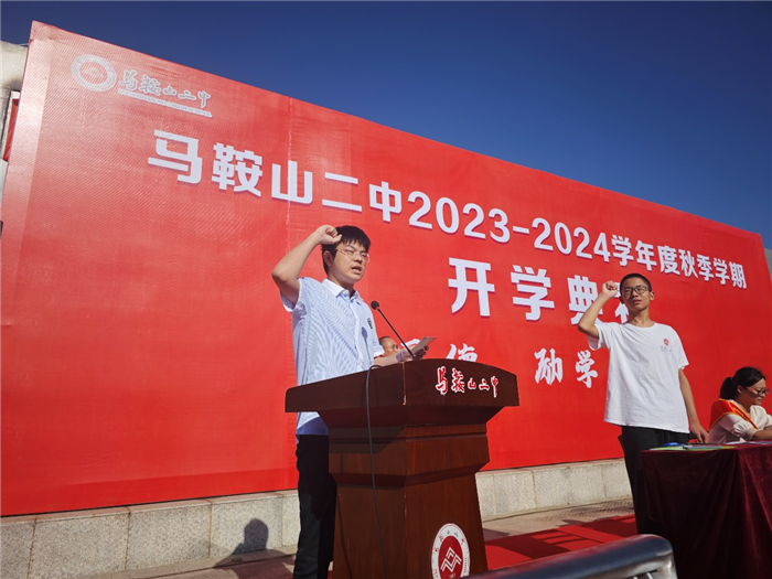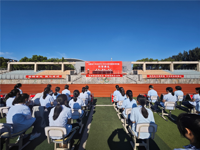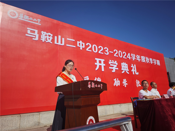 9月(yuè)1日上午,我校在學校田徑場舉行2023—2024學年度秋季學期開學(xué)典禮。開學典禮由馬鞍山二中(zhōng)黨委委員、副(fù)校長慶曉主持。