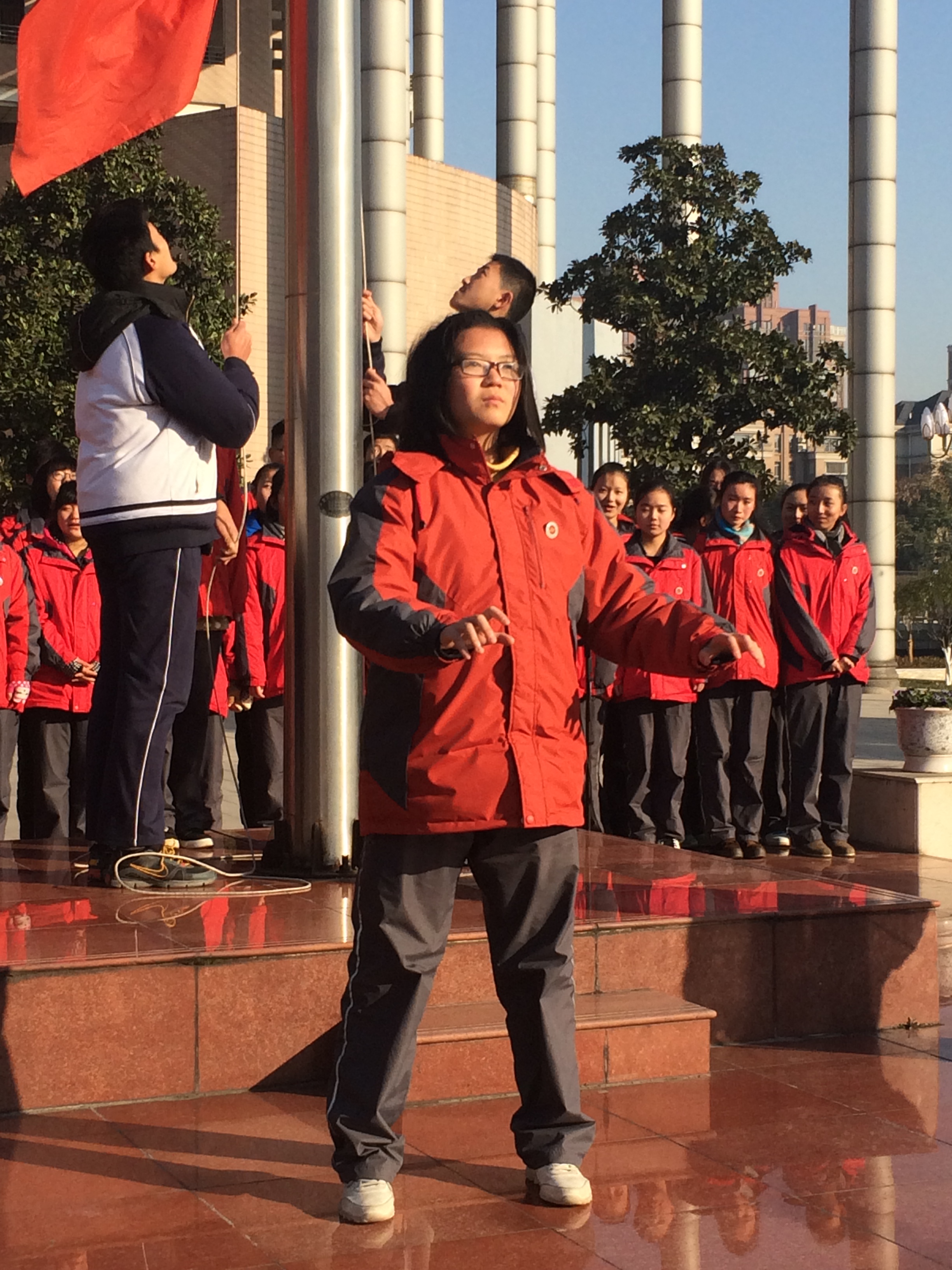 旗手:來自高二(16)的班長(zhǎng)陳一寧(níng)。陳一寧同學在20147月,榮獲全國青少(shǎo)年(nián)優秀藝術節目大賽安徽賽區銀獎(jiǎng),省一等獎。