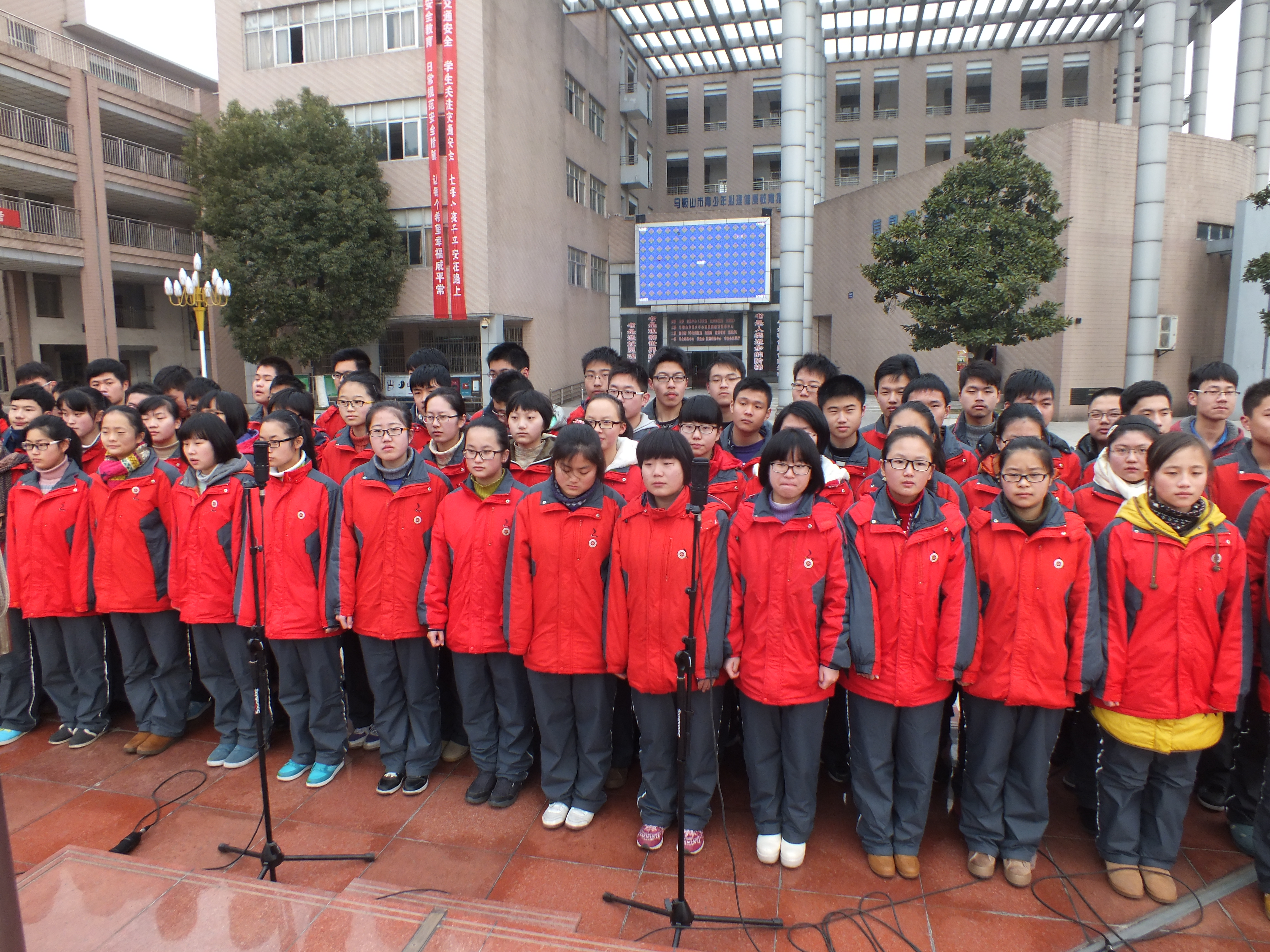 領唱班級:高(gāo)二(èr)(4)班。高二(4)班的同學來自市區和三縣(xiàn),這是一(yī)個和諧的集體,也是一個特別能戰鬥的群體,團結(jié)緊張(zhāng)、嚴肅活潑、勤奮好學(xué)、相互砥礪、班(bān)風優良,在軍訓(xùn)、研學、廣播(bō)操比賽、遠足活動中,都表(biǎo)現出強大的力量,他們決心以最(zuì)飽滿的精神、最紮(zhā)實的努力,迎接更美好的明天。
