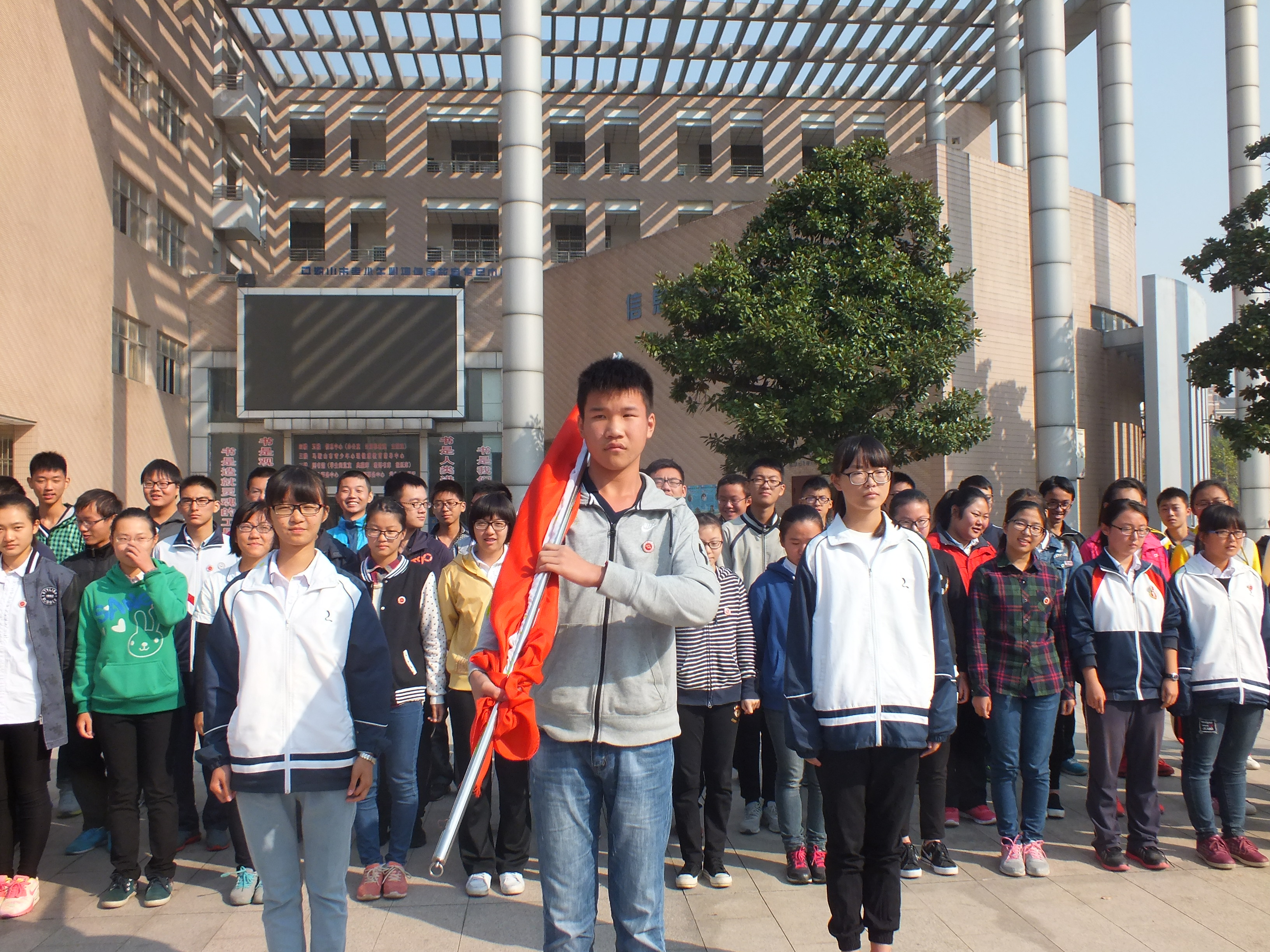 今(jīn)天升旗儀(yí)式旗手(shǒu)的是:高一9班班長車誌(zhì)濤,他積極上進(jìn),在軍訓期間獲得“優秀營員(yuán)“的稱號,作為班長,他(tā)總是能嚴於律己(jǐ),以身(shēn)作則,獲得了老師(shī)與同學們的一致好評。