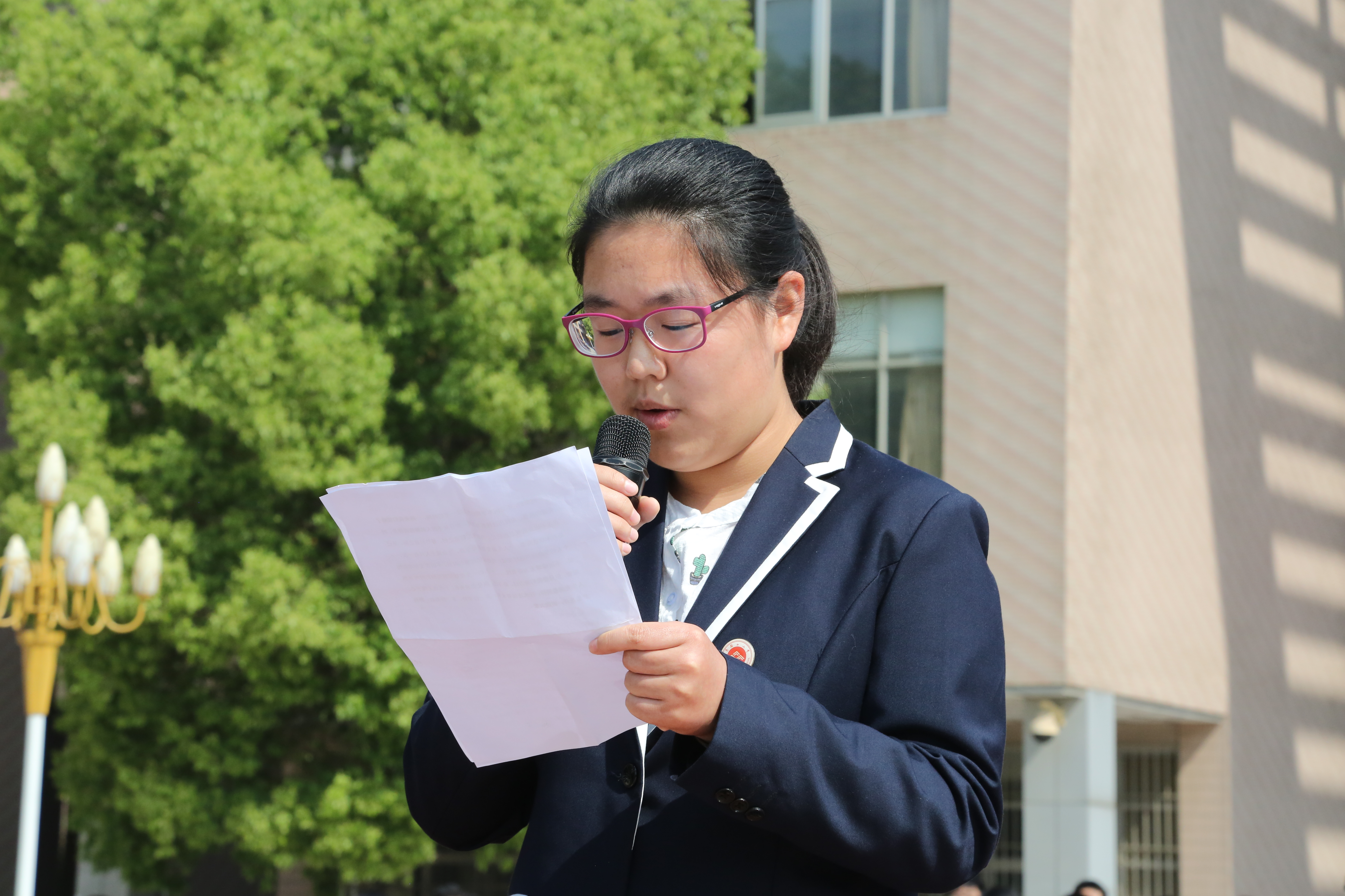 國旗下講話的是來自高二(èr)(3)班的組織委員,她品學兼優,榮獲過三好學生的稱號(hào),在校德育作業(yè)評選中多次獲(huò)獎的(de)王淑豪。