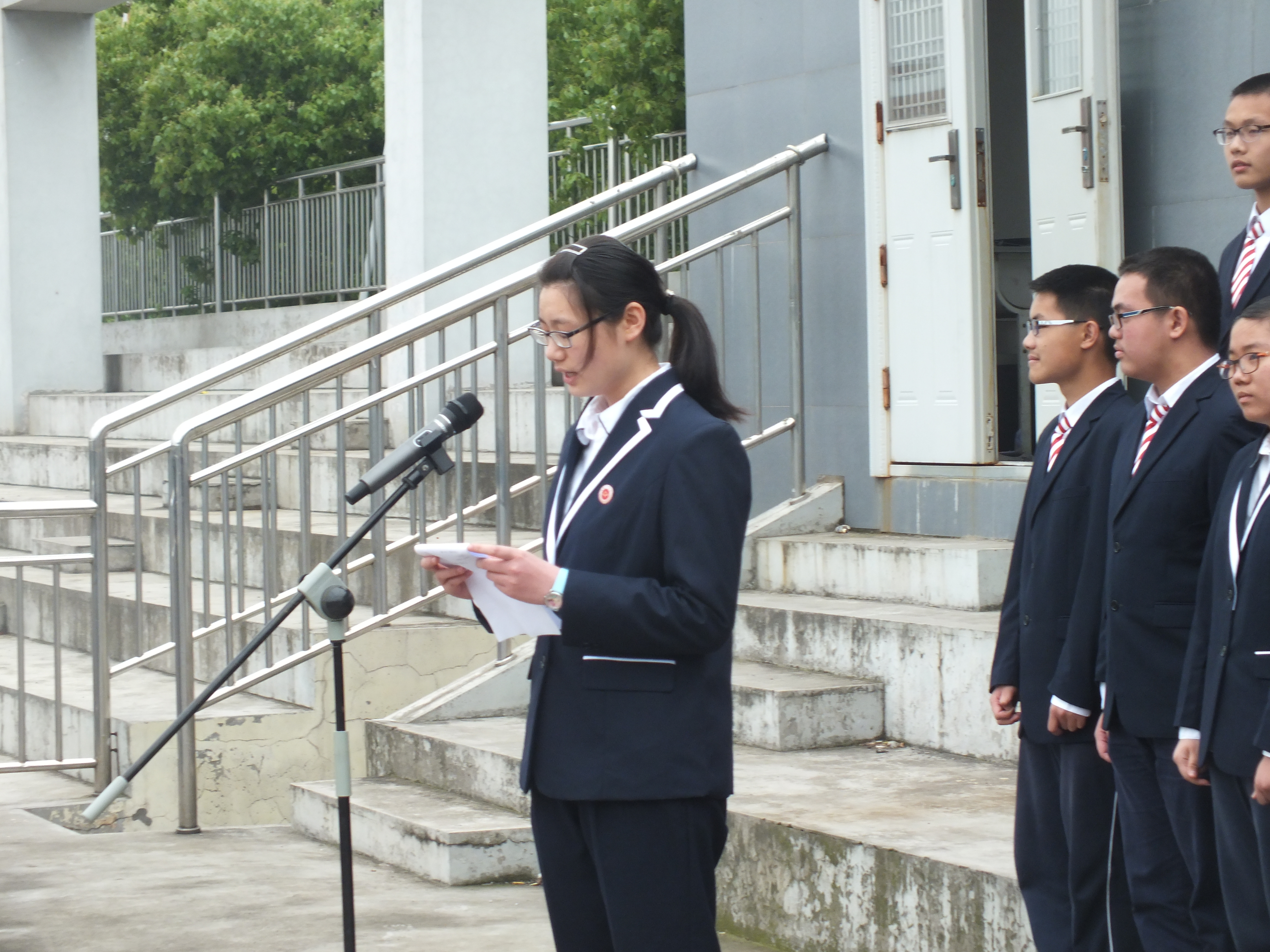 今天擔任升旗儀式升旗手是來自高(gāo)一(yī)(7)班的(de)體(tǐ)育委員孫俊威同學(xué),他第九屆校園心理劇(jù)創作表演大賽最佳男演員獲得者