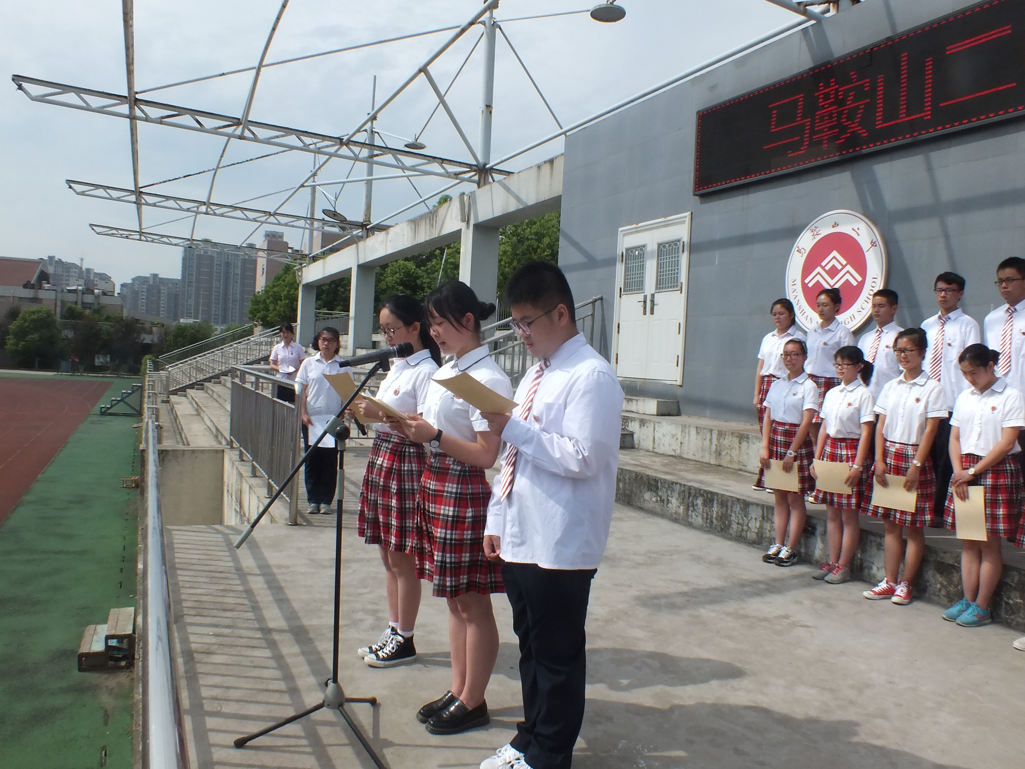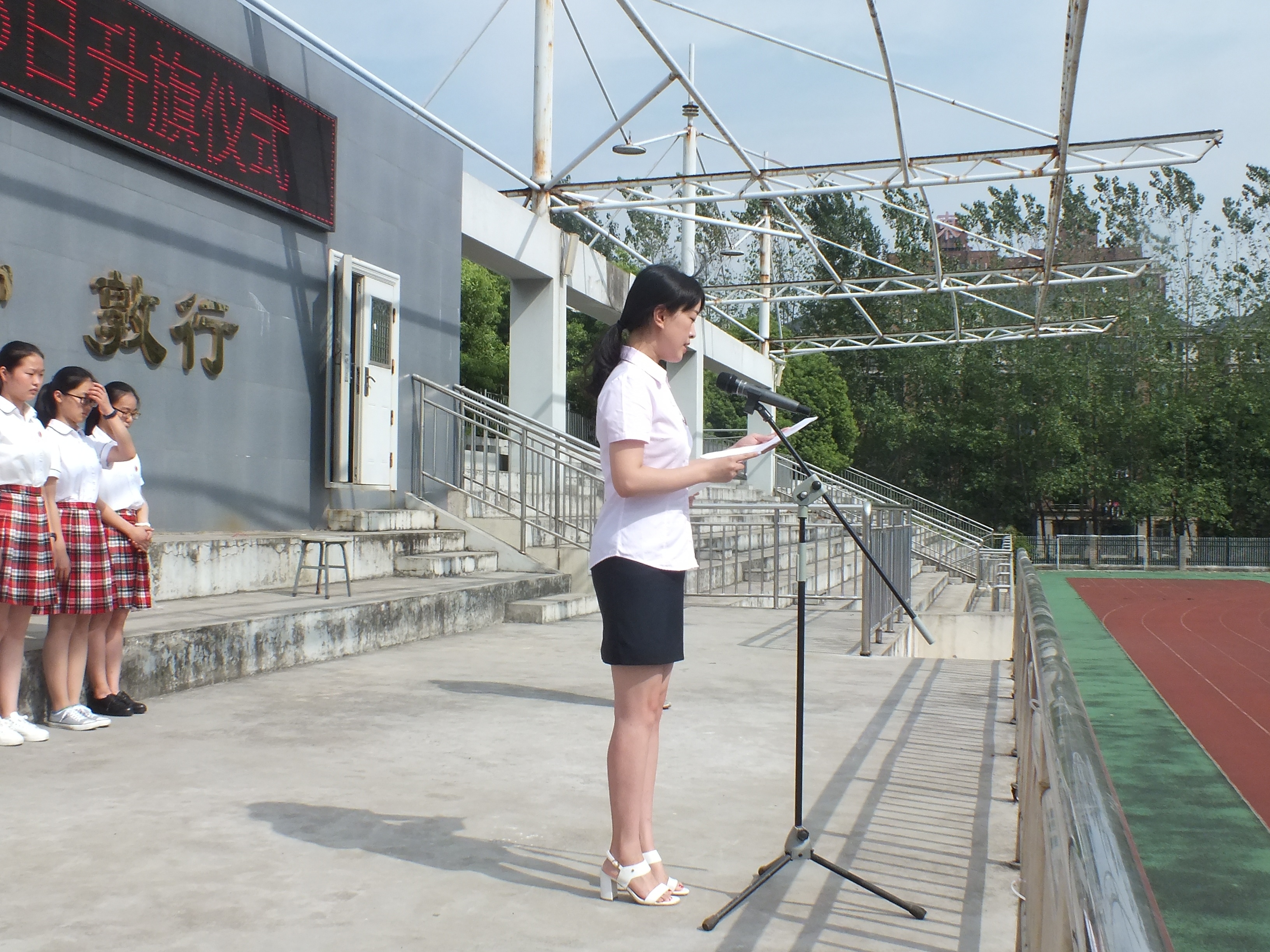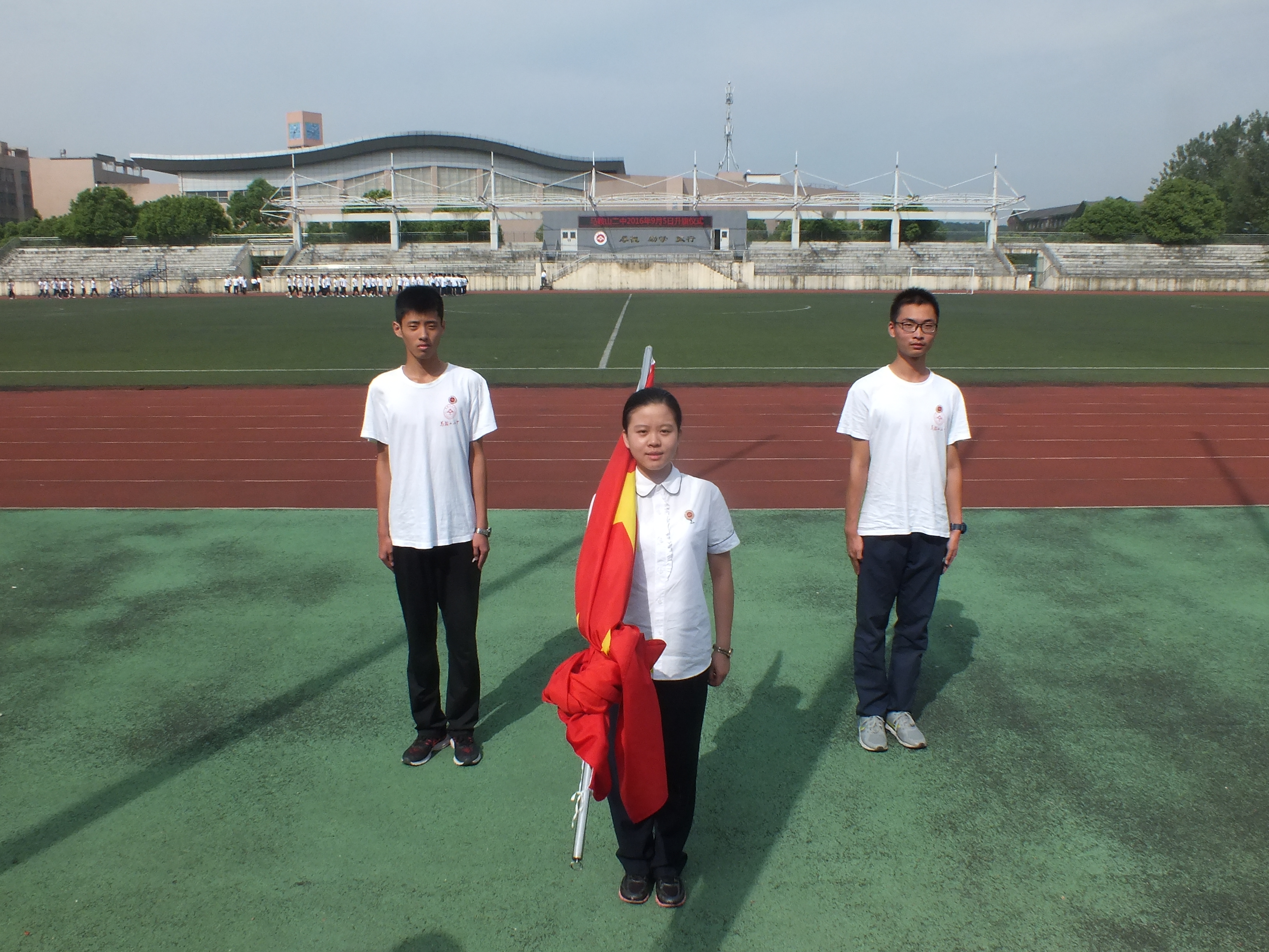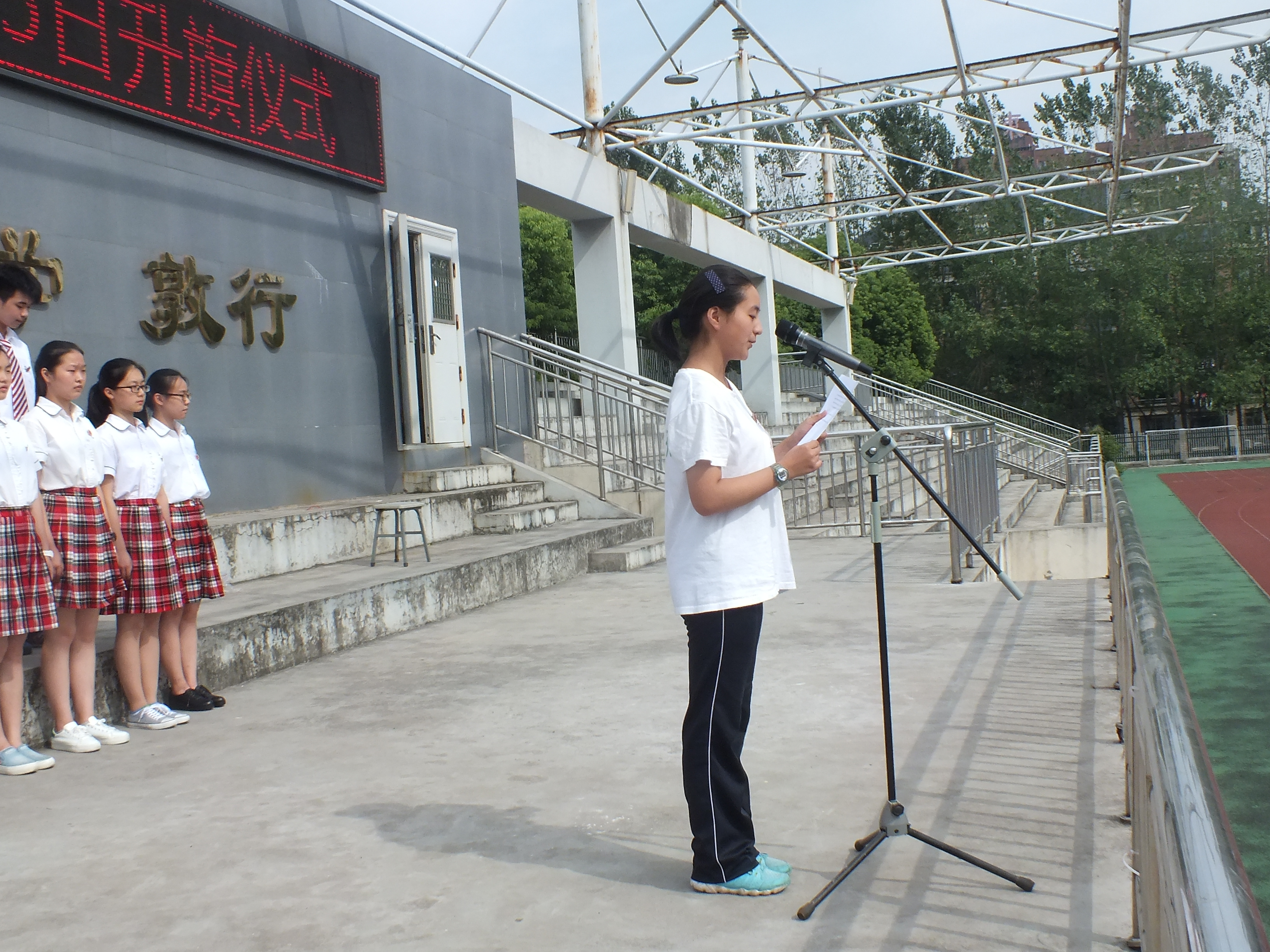 今天(tiān)擔任升旗儀式主持(chí)的是來自高一(16)班的湯捷同學。