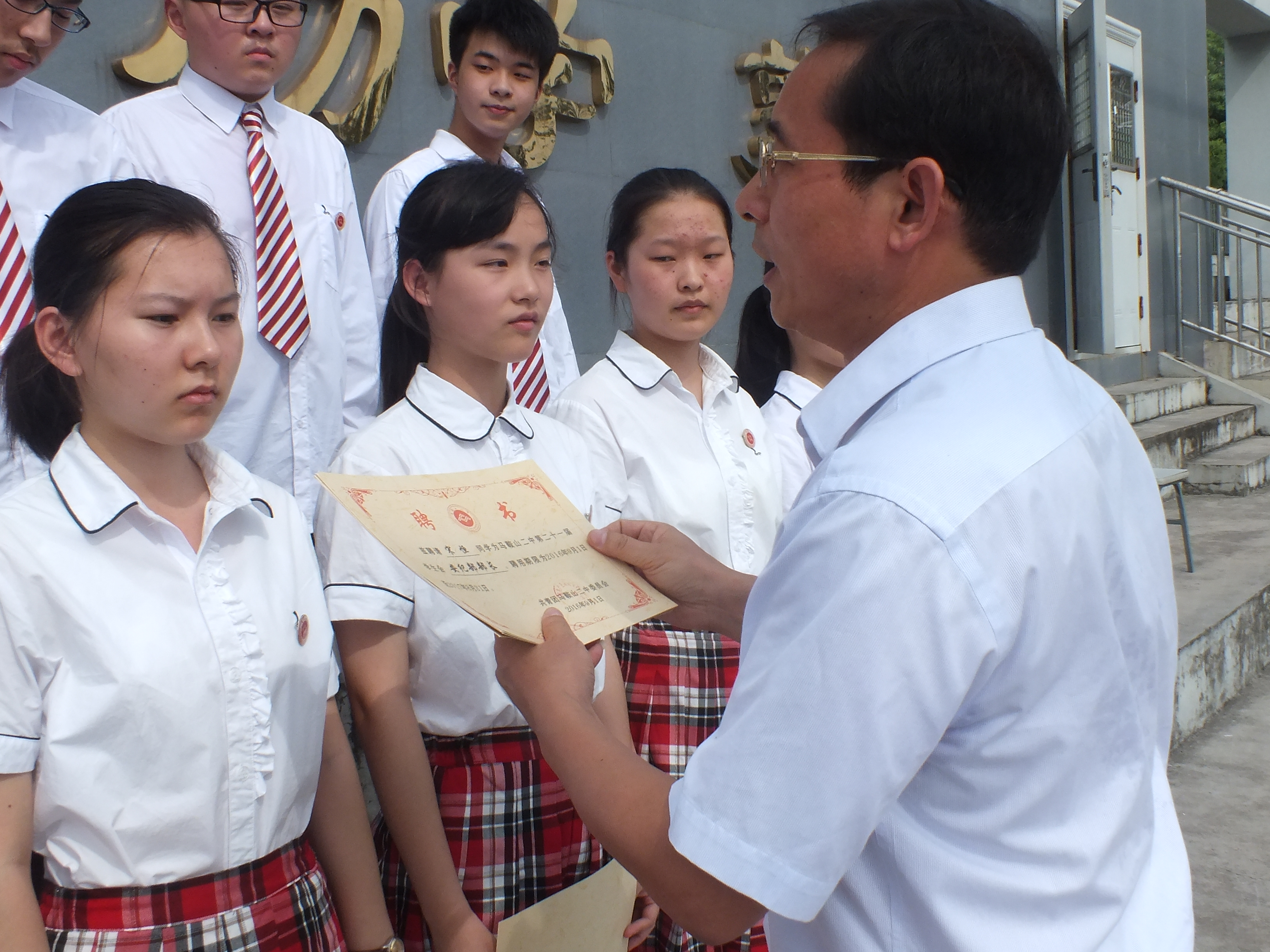 校領(lǐng)導為新一屆學生會成員(yuán)頒發聘書。