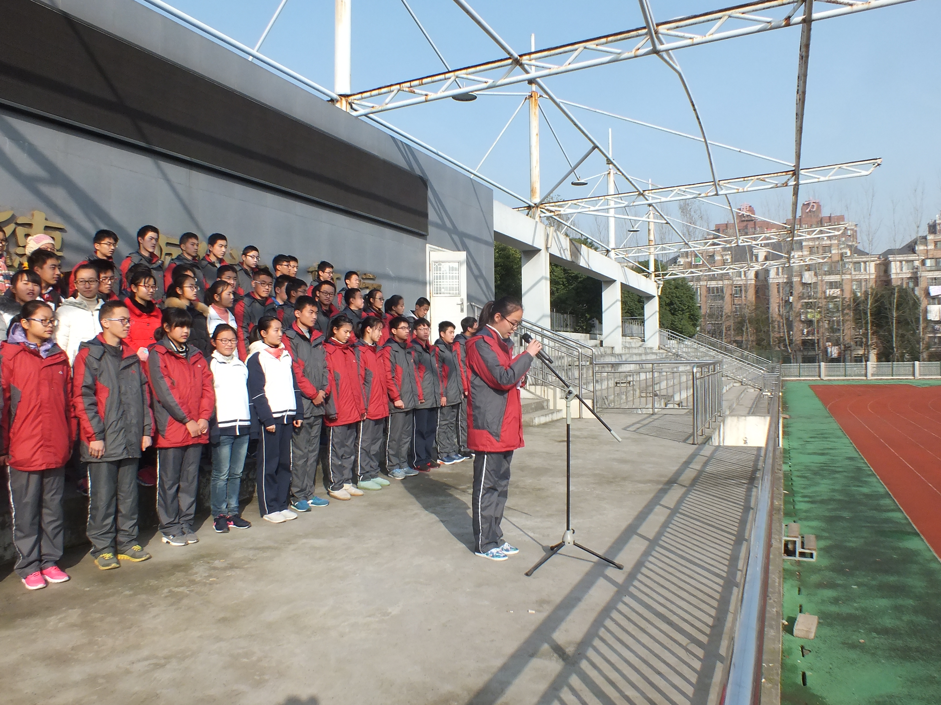今(jīn)天做國旗下講話的是來自高一(4)班(bān)的張丹萍同學。
