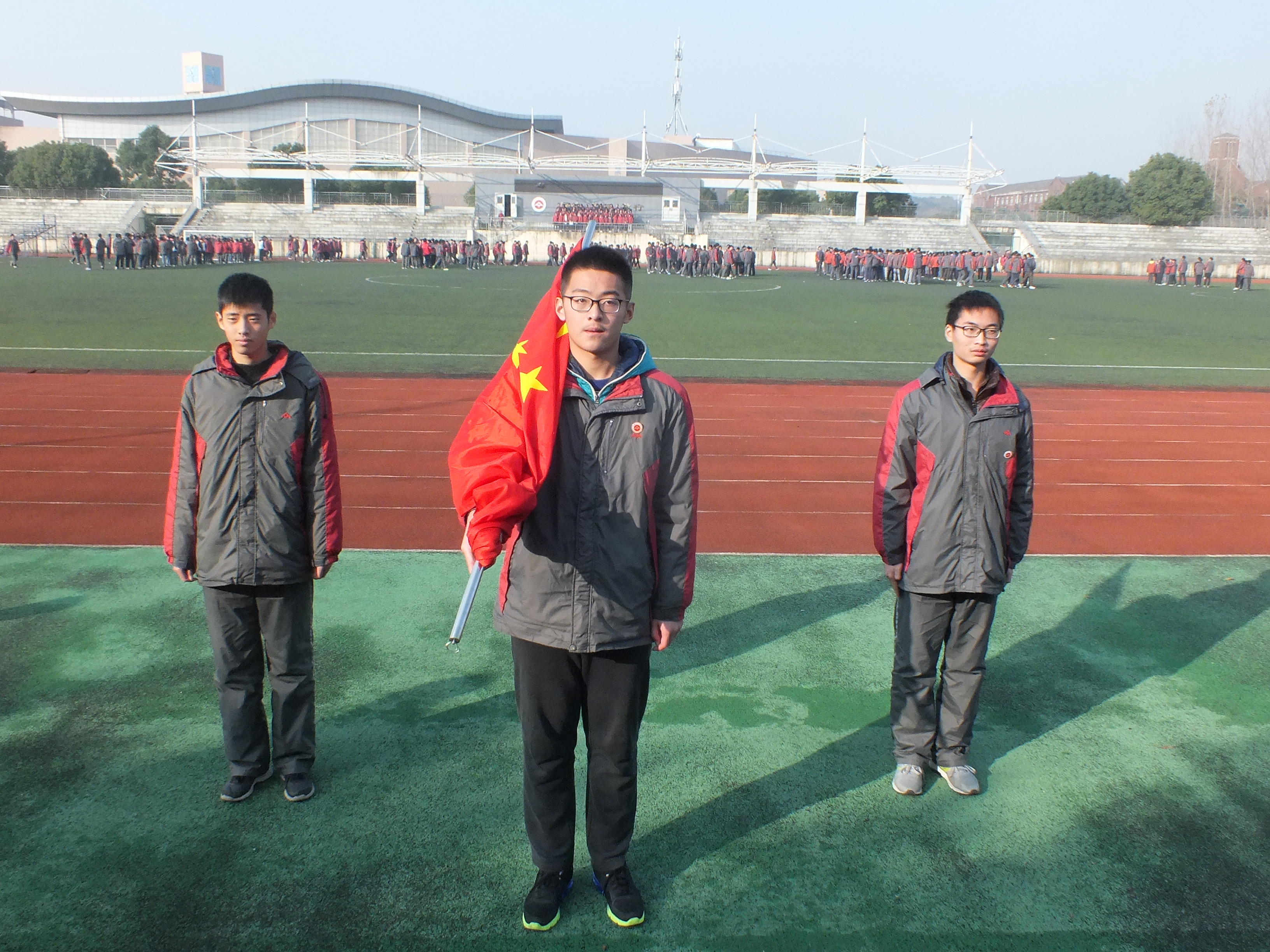 今天擔任升旗手的是(shì)高二(19)班班長(zhǎng)、校學生會體育部部長金濤同學。