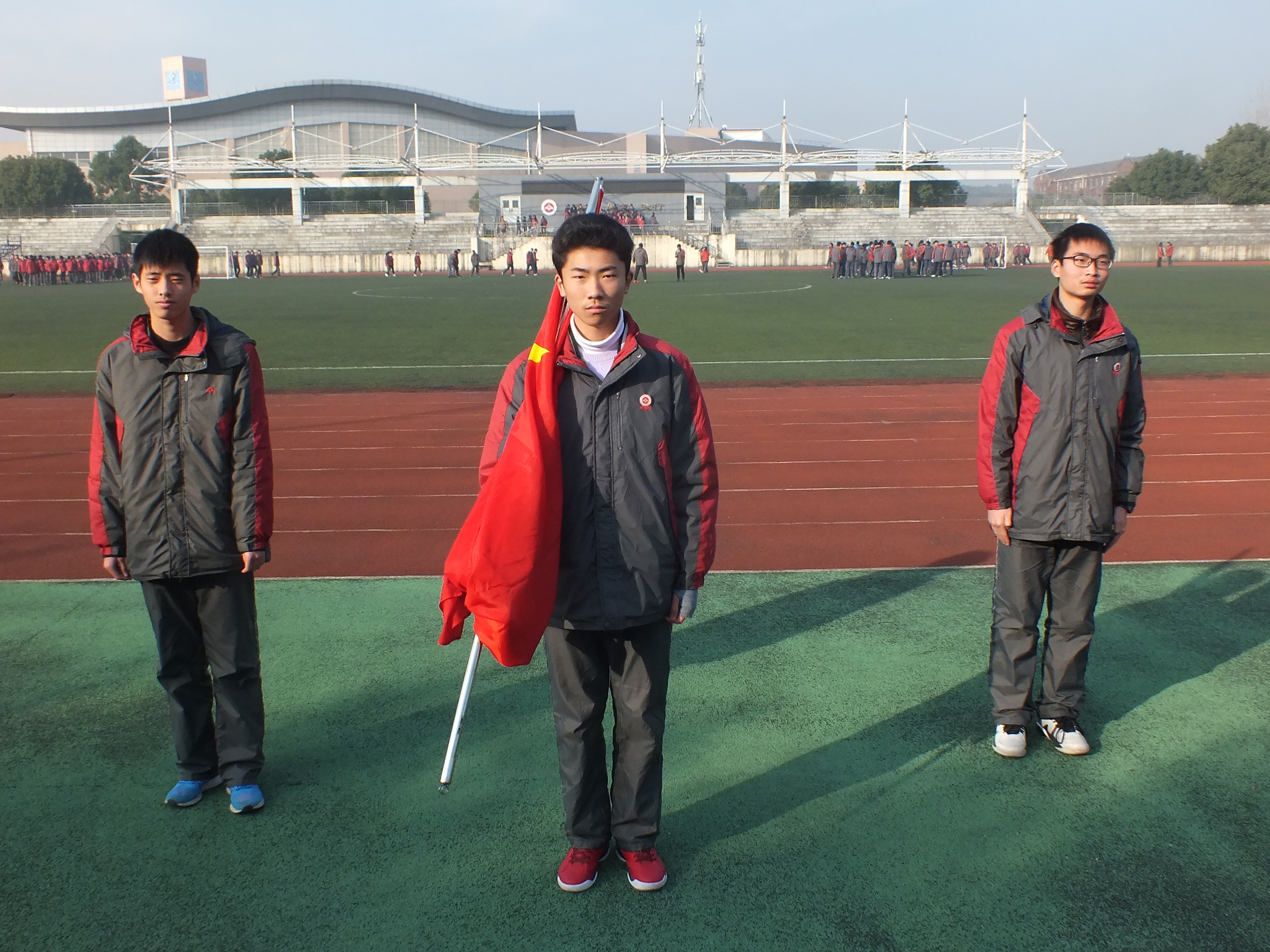 今天擔任升旗手的是來自高二(5)班的體育委員鄂泓哲同學。