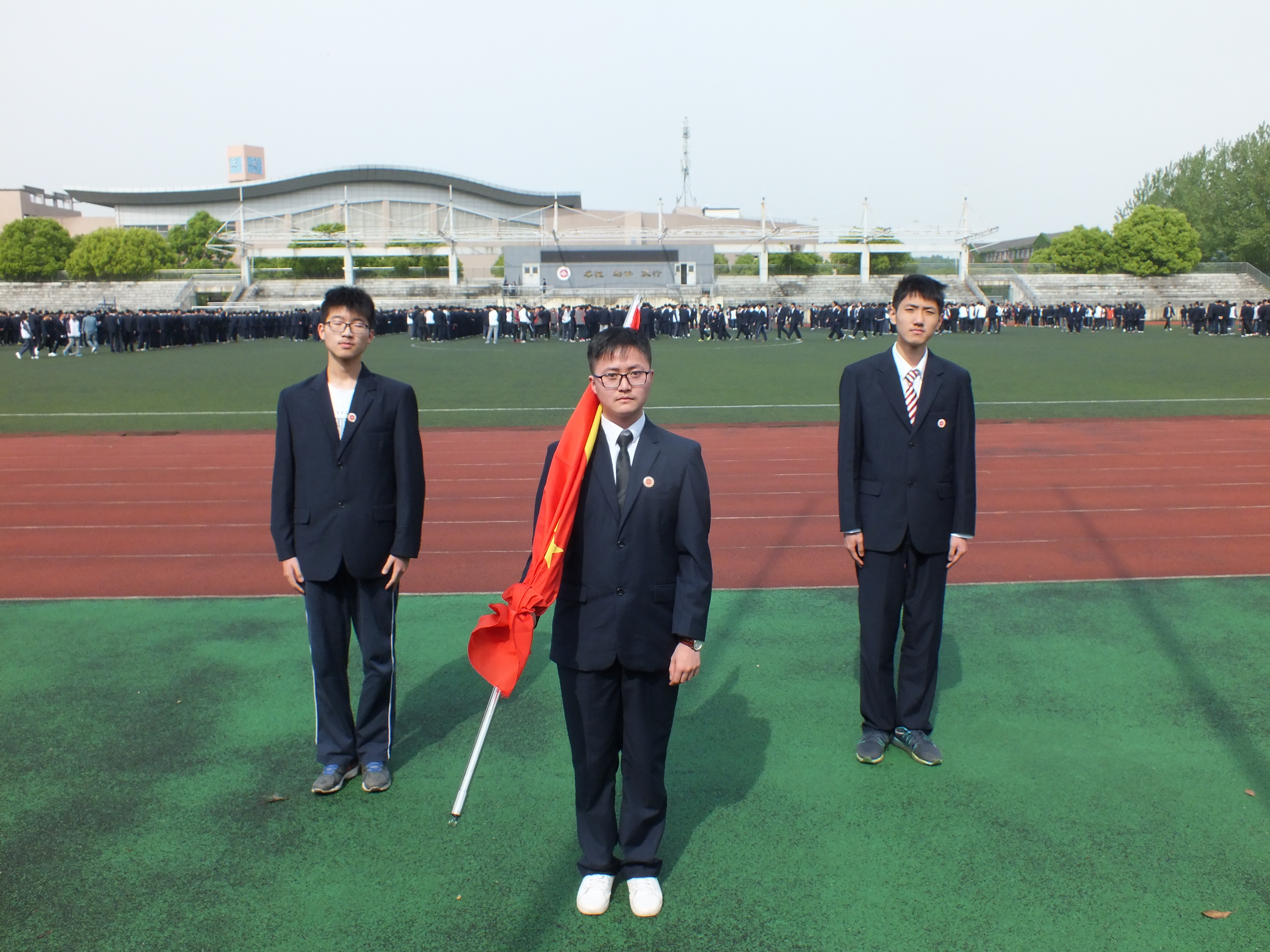 第五屆學生校長助理黃(huáng)子(zǐ)沐同學擔任旗手。