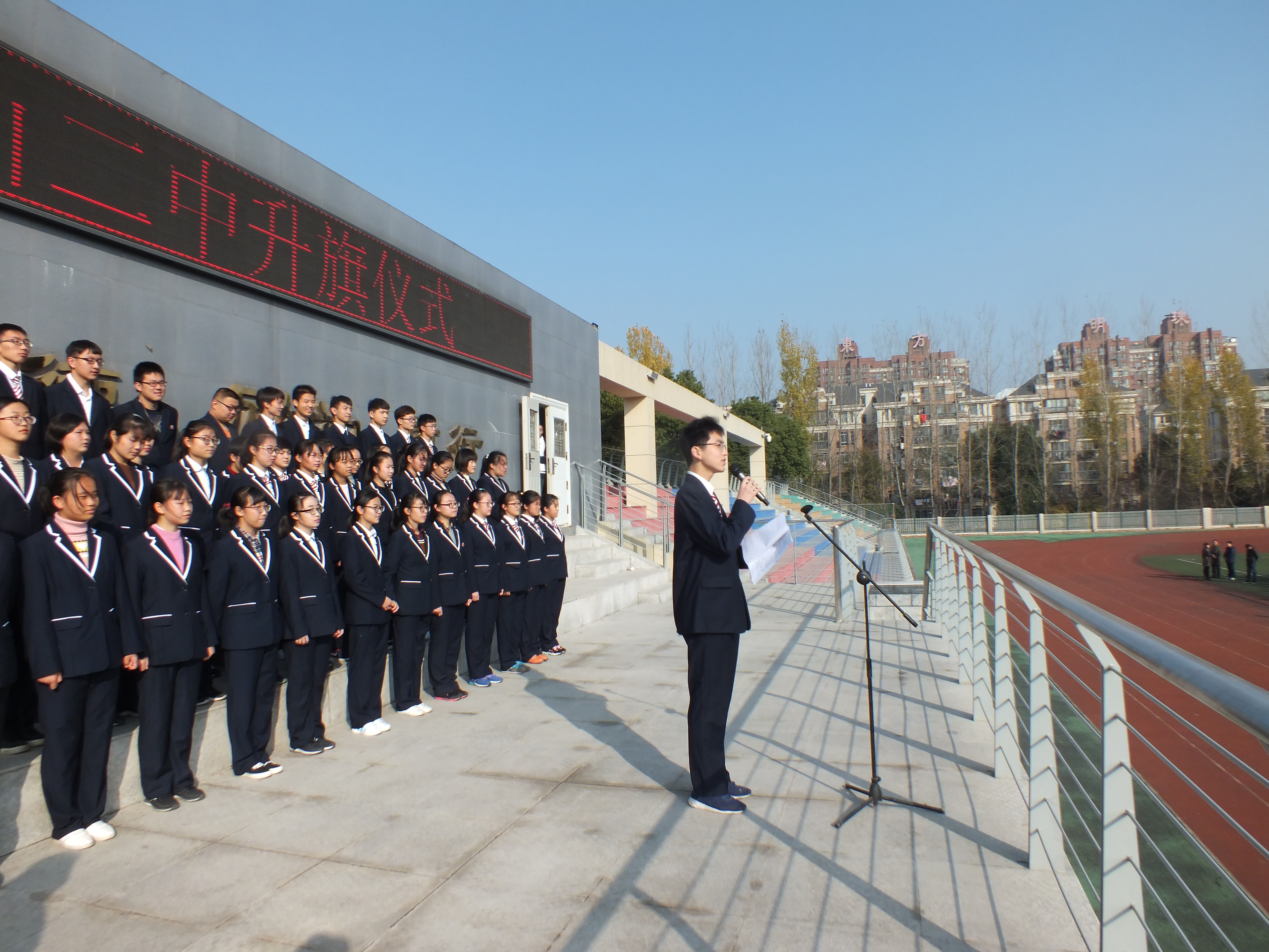 擔任今天升旗儀式旗(qí)手的是來自高二19班 班長 曾獲(huò)英語書寫大賽二(èr)等獎的汪妍同學。