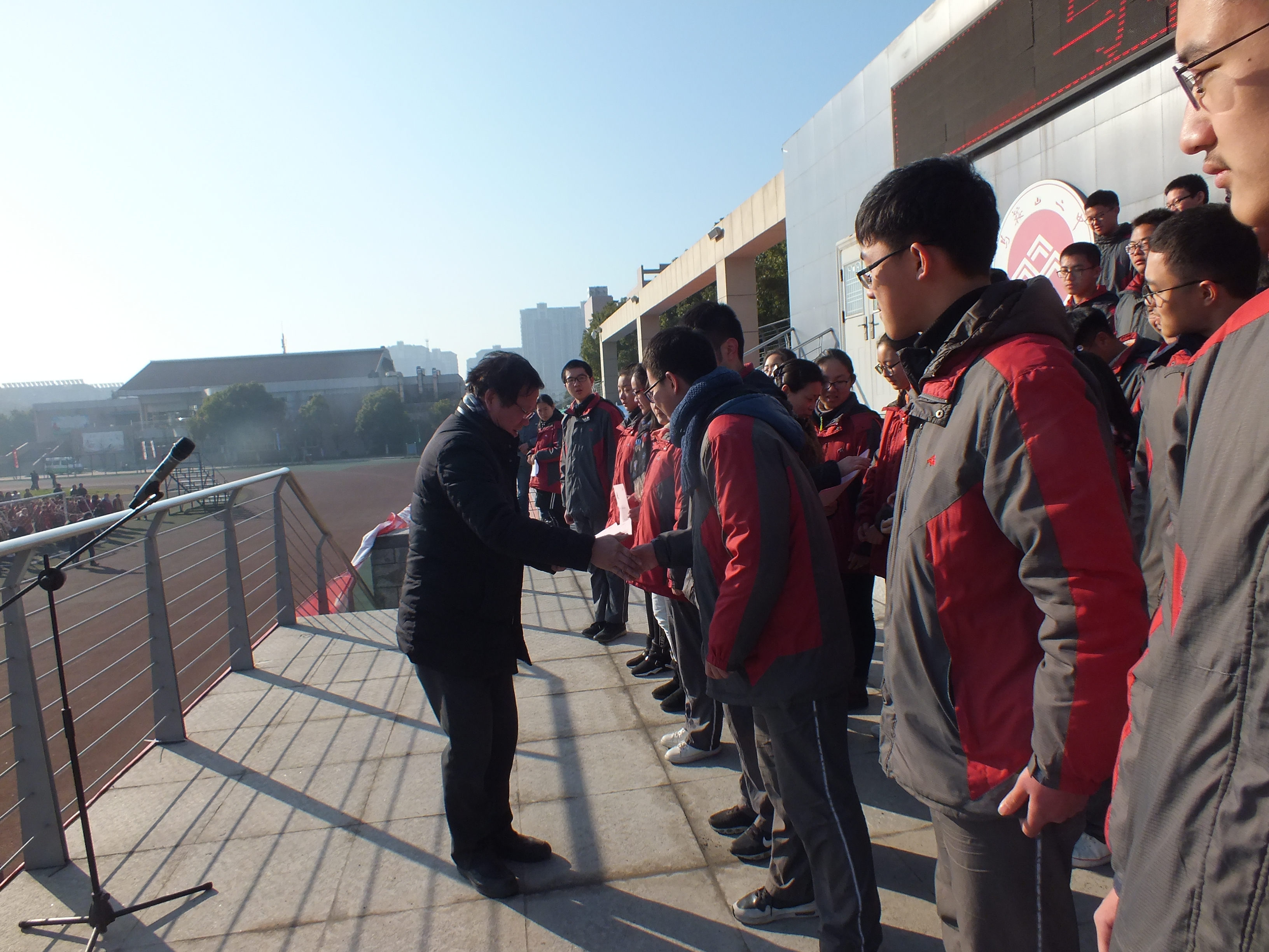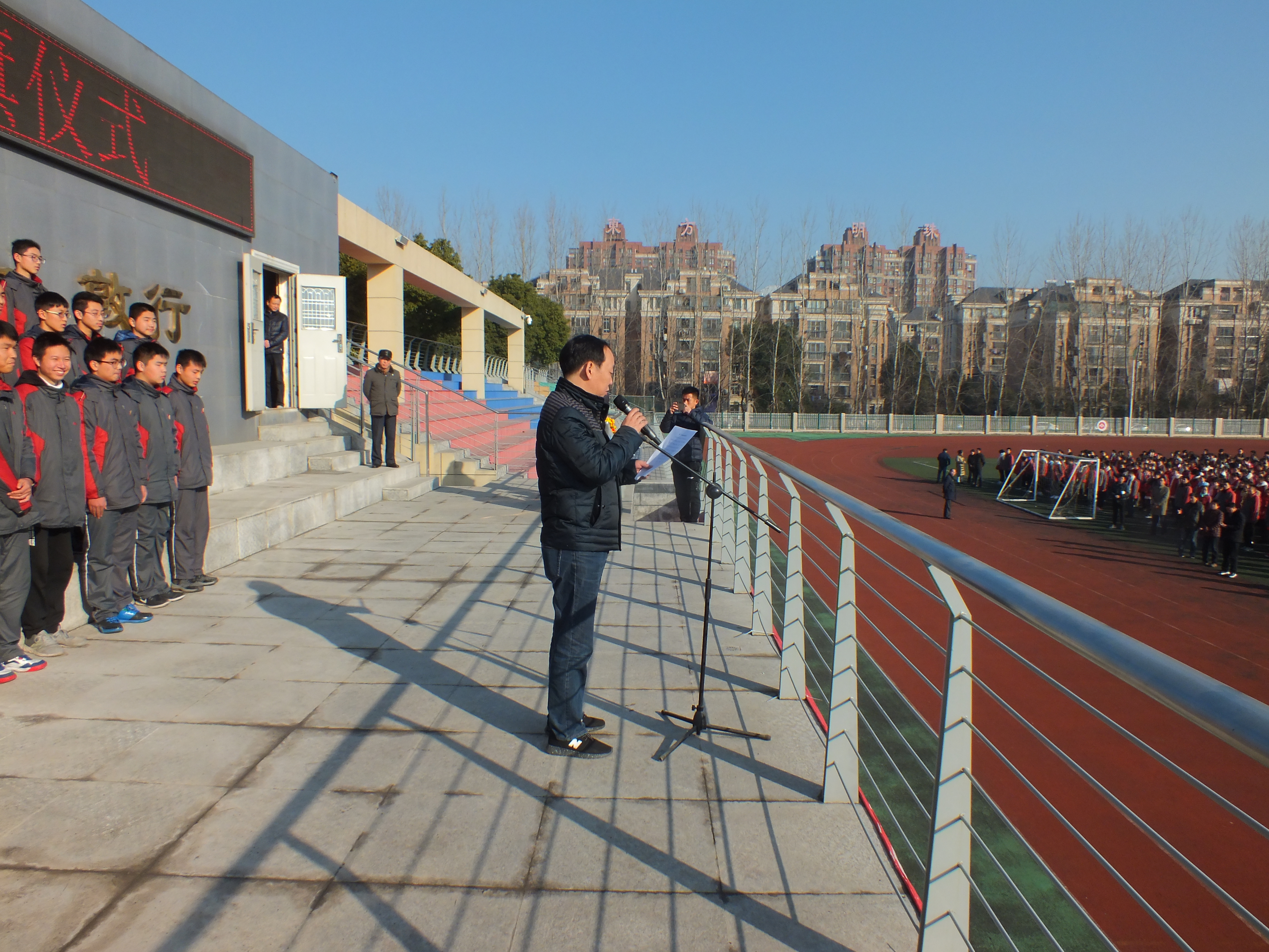 教(jiāo)導處王躍兵主任(rèn)宣讀高一足球聯賽獲獎情況。