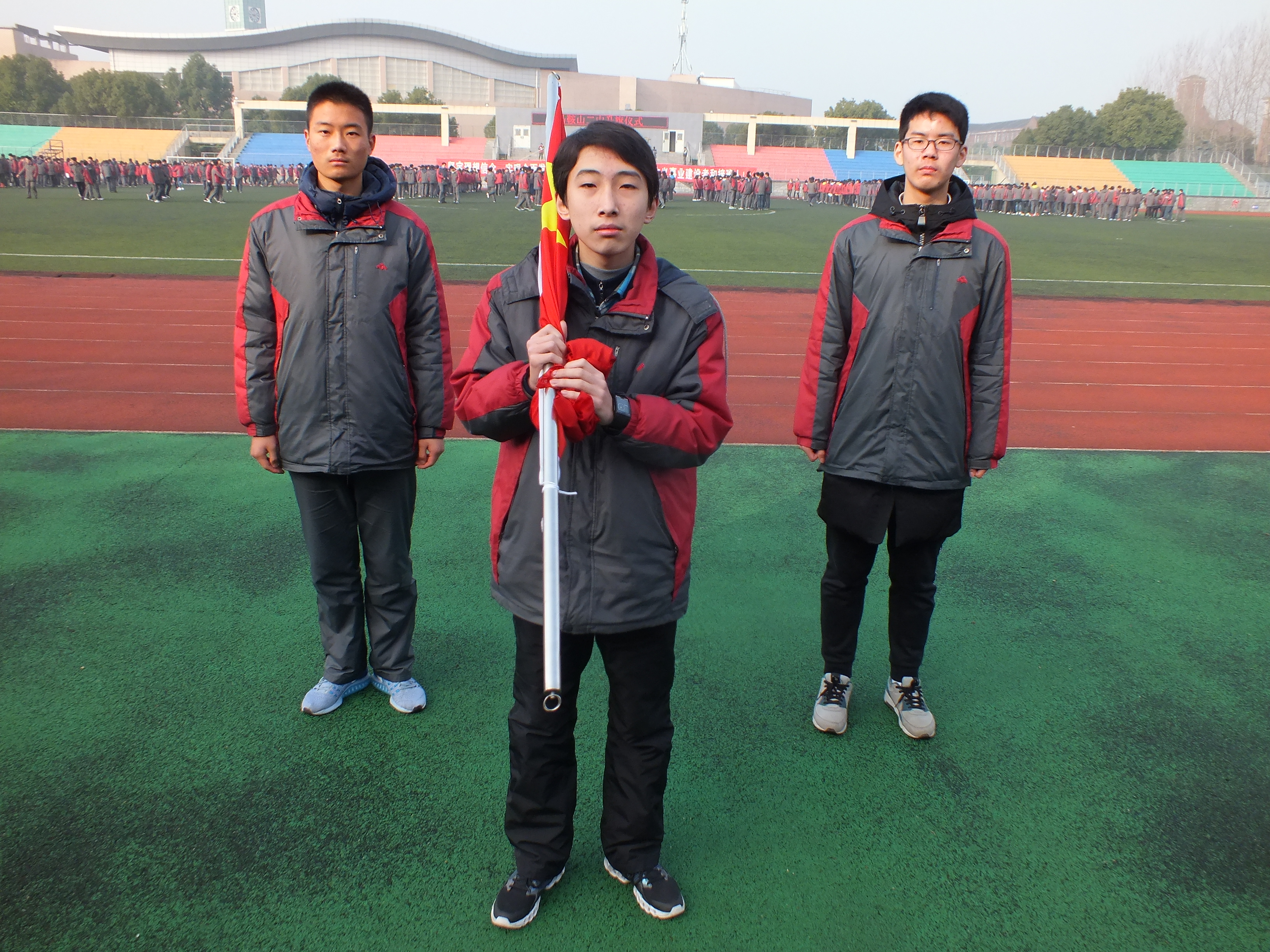 擔任(rèn)今天升旗儀式旗手的是來自高一(11)班的桑田同學。