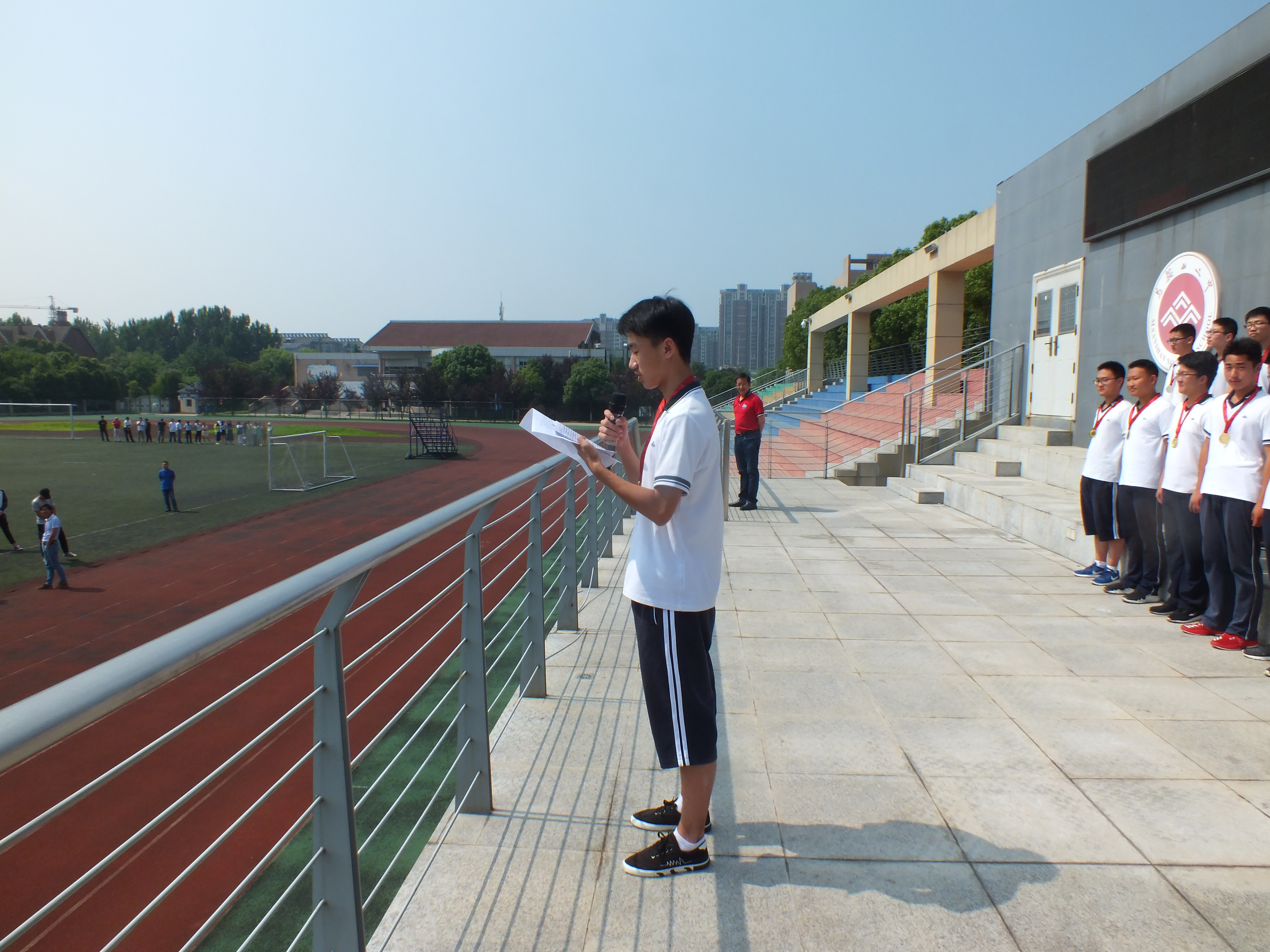 教導處王躍兵主任宣(xuān)讀高二年級足球比賽獲獎(jiǎng)情況。
