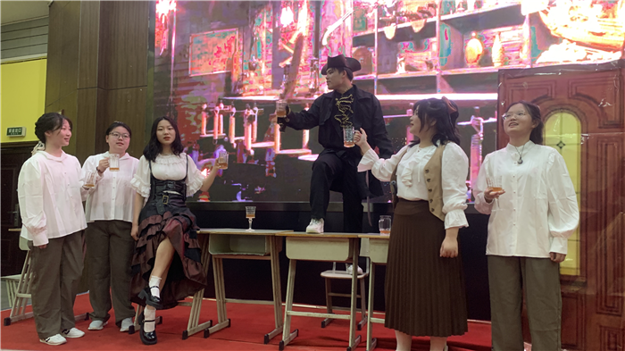 高二(èr)年級21個班級按照抽簽順序依次上台(tái)進行表(biǎo)演,短劇內容題材多樣,主要有電影片段和名著節選,如《了不起的蓋茨比》《灰姑(gū)娘》《西遊記》等。還(hái)有個別班級富有創造力地自編自導劇本,讓老(lǎo)師和同學們(men)眼前一亮。不僅如此,演(yǎn)員(yuán)們標準(zhǔn)自然的語音(yīn)語調和富有激情(qíng)的表演也得到了各位老師的認可和讚賞。