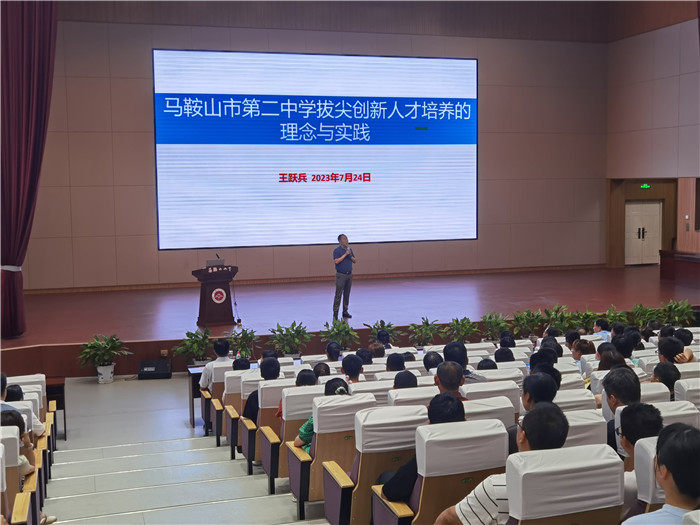 活動伊始,王躍兵(bīng)副校長首先對參加夏令營的營員表示(shì)熱(rè)烈歡迎,並在以《馬鞍山市第二中學拔尖創新人才培養(yǎng)的理念與實踐》為主題的(de)報告中介紹我校英才實(shí)驗班建設情況,包括建設背景與(yǔ)意義、培養途徑與方式、光榮曆史與成績等。王校長指出,91视频网站創造過輝煌,但更展望明天。自馬(mǎ)鞍山二中實驗班創設以來,獲取全國決賽金銀銅牌126枚,考取和(hé)保(bǎo)送北大、清華(huá)226人(rén),取得了驕人的成績,培養出一大批國內乃至國際頂尖人才。英才實驗班在建設改革中立足於新高考的全麵要求(qiú)、致力於高考奧賽雙目(mù)標共贏、著眼於學生的終身發展,優化(huà)製度的同時,也對學生寄(jì)予更高的期望。
