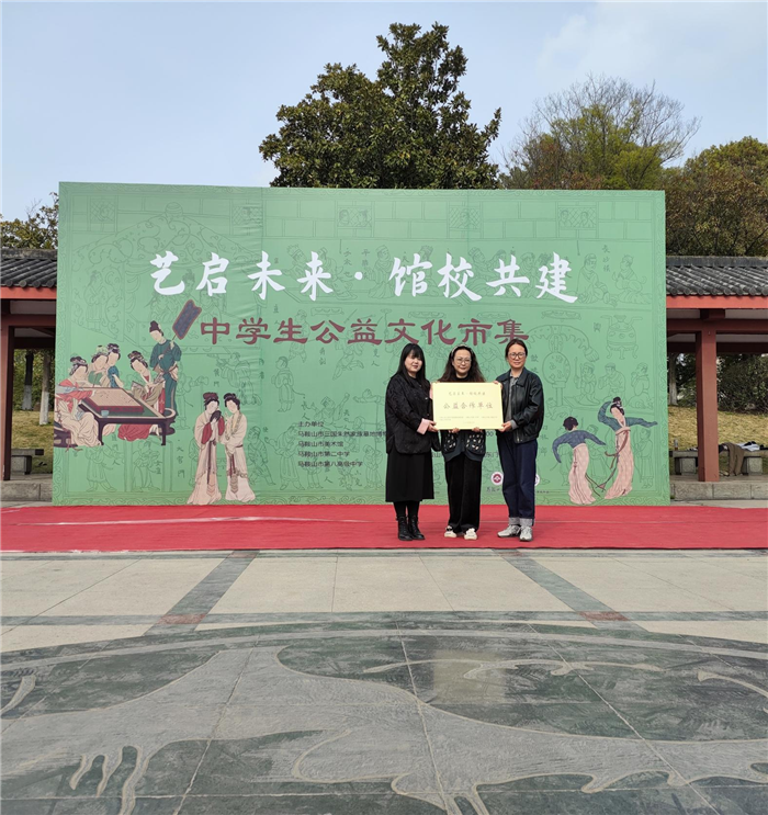 表演結束後,馬鞍(ān)山市三國朱然家族墓地博物館、馬鞍山市美術館和(hé)馬鞍山市第二中學、馬鞍山市第八高級中學結成“藝(yì)啟(qǐ)未來·館(guǎn)校共建”公益文(wén)化活動合作單位,馬鞍山市美(měi)術館王菡主(zhǔ)任(rèn)、我校楊青青老師和(hé)馬鞍山市第八高級中學(xué)藝術中心主任陳娟老(lǎo)師互贈銅牌並合(hé)影留念。最後邀請老師們(men)為參與本次館校共建活動(dòng)的優(yōu)秀二中學子頒發紀(jì)念證書並合影留念。