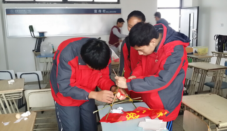 1129,細雨綿綿,在蚌埠(bù)二中博學樓內(nèi),來(lái)自安徽省六校的(de)同學們匯聚一堂,進行了六校教育科技交流。我校交流的主題是“馬鞍山二中科(kē)技社團建設”。校學生(shēng)會主席張晨同學對馬(mǎ)鞍山二中學子(zǐ)的專利(lì)發明及(jí)生物(wù)圈(quān)III號、北辰魔方組及其他科技社團建設(shè)概況(kuàng)進行了介(jiè)紹,化學(xué)組(zǔ)組長龔勳(xūn)、盛梓陽同學向大家展示了化學小組的活動成果,並介紹了他們創新的“魯米諾實驗”,引起大家極大的(de)興趣。我校科技交流體現了(le)我校學子科技創新和探(tàn)索精神及二中豐富多彩的校園生活,獲得了一致好評。交流活動結束之後,被大家熱議很久的“雞蛋砸地球”比賽拉開序幕。風雨(yǔ)交加確實給(gěi)比賽增加了不少難度和懸念(niàn),但賽隊員們的設計製作充滿創意,幾(jǐ)十件作品在無動力、無牽引的狀況下努力實現雞蛋(dàn)由(yóu)固(gù)定高度落到水(shuǐ)泥地麵後的完好無損。