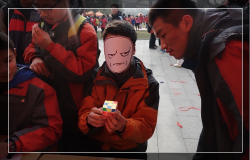 魔方組的同學們用100個魔方拚成二中(zhōng)LOGO