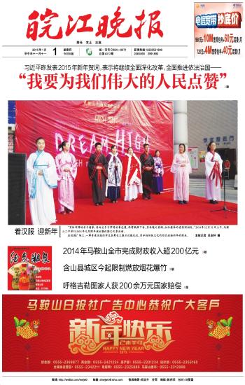 《皖江晚報》2015年1月1日頭版報告我校校(xiào)園文化季活動,內容如下: