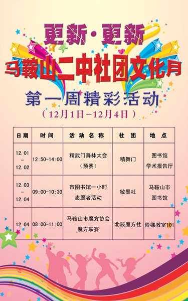 “更新·更(gèng)新”社團文化月第一周活動(12月1日-4日)
