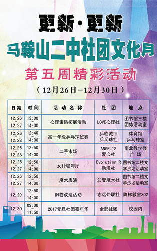 “更新·更新(xīn)”社團文(wén)化月第五周活(huó)動(12月26日-30日)