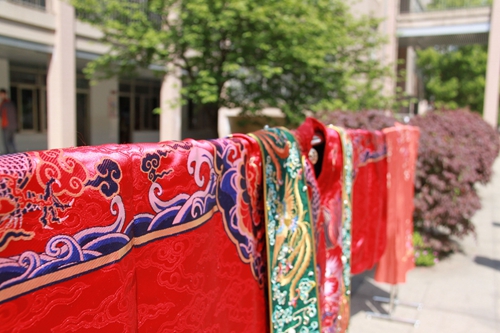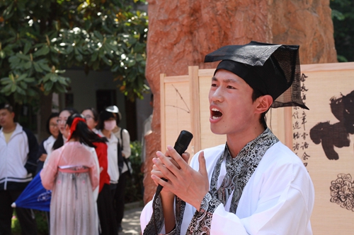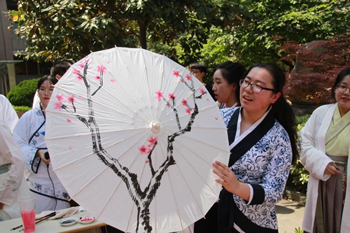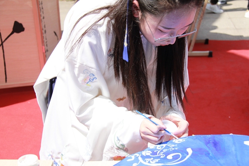 華麗、精(jīng)致的(de)漢服(fú)一一陳列在教學樓間的展架上,使同學們大飽(bǎo)眼福,驚歎連連;國(guó)學社(shè)社員(yuán)們精心(xīn)準備的字謎由紅繩牽引著(zhe)懸掛在兩旁(páng)的樹木上,引得前來(lái)圍(wéi)觀的同學(xué)們紛紛開動(dòng)腦筋,憑(píng)借正確(què)答案領取獎品——青團……同學們聚集在廣場上,現(xiàn)場分外(wài)熱鬧(nào)。