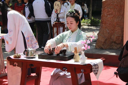 而最吸引人(rén)眼球的還是精彩的節目表(biǎo)演——翩若驚鴻、婉若遊龍的開(kāi)場舞蹈《禮儀(yí)之邦》,婉轉動聽的古琴彈唱《葬花吟(yín)》,茶道展示與現場題字(zì)畫的完(wán)美結合,詩歌朗誦……同學們不僅身(shēn)著(zhe)各(gè)具特色的民族傳統服裝,更自信地展示著民族文化風采,舉(jǔ)手投足間,盡顯民族自豪之情。在演(yǎn)出的最後,最(zuì)後由郭惠宇校長致辭總結結束了本次(cì)活(huó)動。