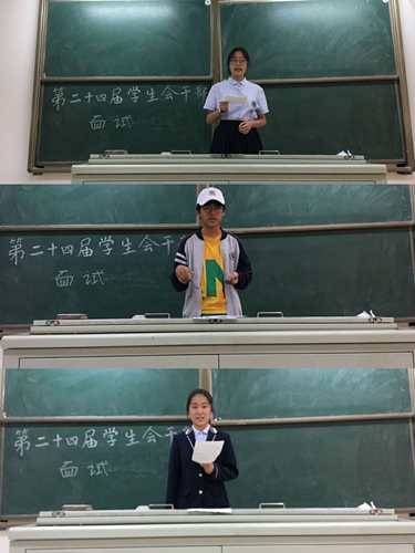 麵試(shì)由學(xué)校團委老師和現任學生會幹部、第七屆學生校長助理擔任評委,經過自我介紹、闡述工作設想、評委提問等環節後,10位同學成(chéng)功(gōng)獲得試用期資格。
