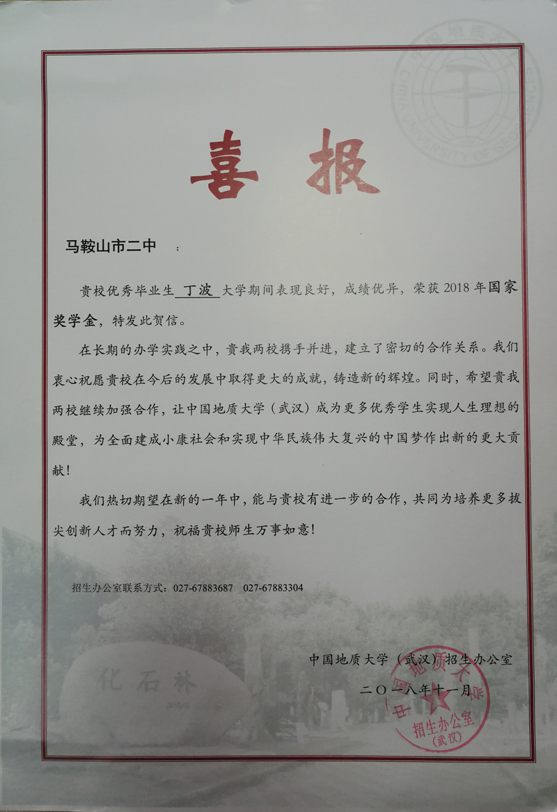 中國地質大學(武(wǔ)漢)喜報