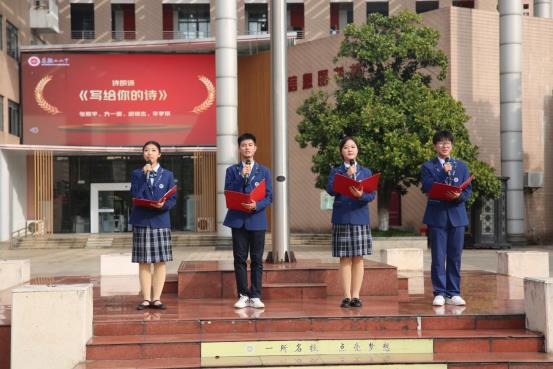 101班張熙宇、104班方一諾、105班李夢琪、108班胡瑞傑四名(míng)同(tóng)學獻上深情的詩(shī)朗誦《寫給你的詩》,代表全體學生表達對(duì)恩(ēn)師的愛戴與祝福。