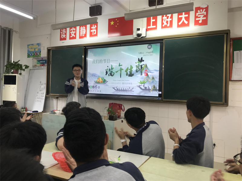 班長(zhǎng)袁樂天首先向大家介紹了端午節(jiē)的淵源與習俗:祭屈原、吃(chī)粽子、製香囊、賽龍舟、飲(yǐn)雄黃酒。袁樂天同學的(de)講解生動有趣,讓同學們在感興趣的同時(shí)體會到傳統文(wén)化的魅力。
