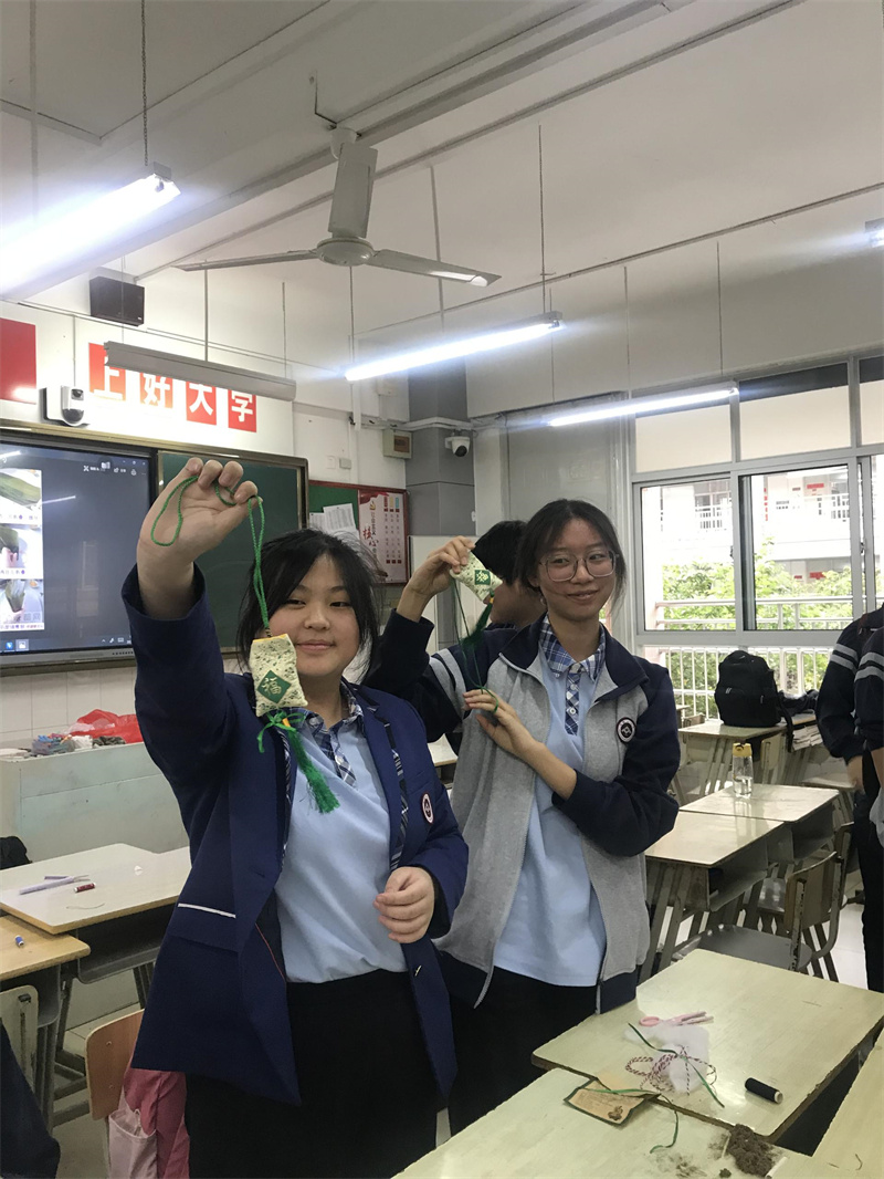 同學們在老師和家長的指導下開始了(le)包(bāo)粽子與(yǔ)製作香囊的活動(dòng)。少年們將碧葉裹滿(mǎn)團圓,蟬聲清涼,粽葉飄香;少女們將彩線纏(chán)成情誼,青艾傳意,互祝(zhù)安康。班主任(rèn)郭老師笑意盈盈,記錄下(xià)這“門前倚青艾,院內裹粽香”的美好時光。