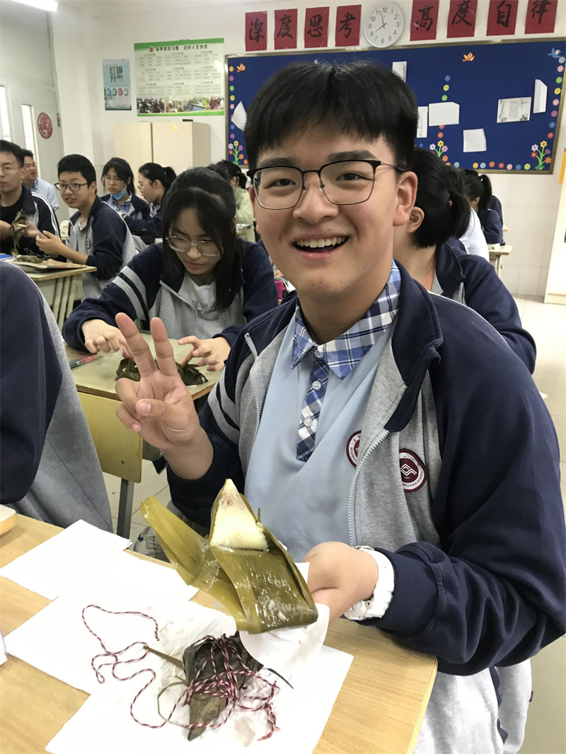 第二天早上同學們到校後,收到(dào)了每個人辛勤勞動(dòng)的成果——熱氣騰騰的粽子。拉開粽線、打開粽葉,誘(yòu)人(rén)的香味撲鼻而來(lái)。同學們紛紛迫不(bú)及待地享用起美味,班長袁樂天還代表全班同學向高一(17)班的科任(rèn)老師送去了驚喜。
