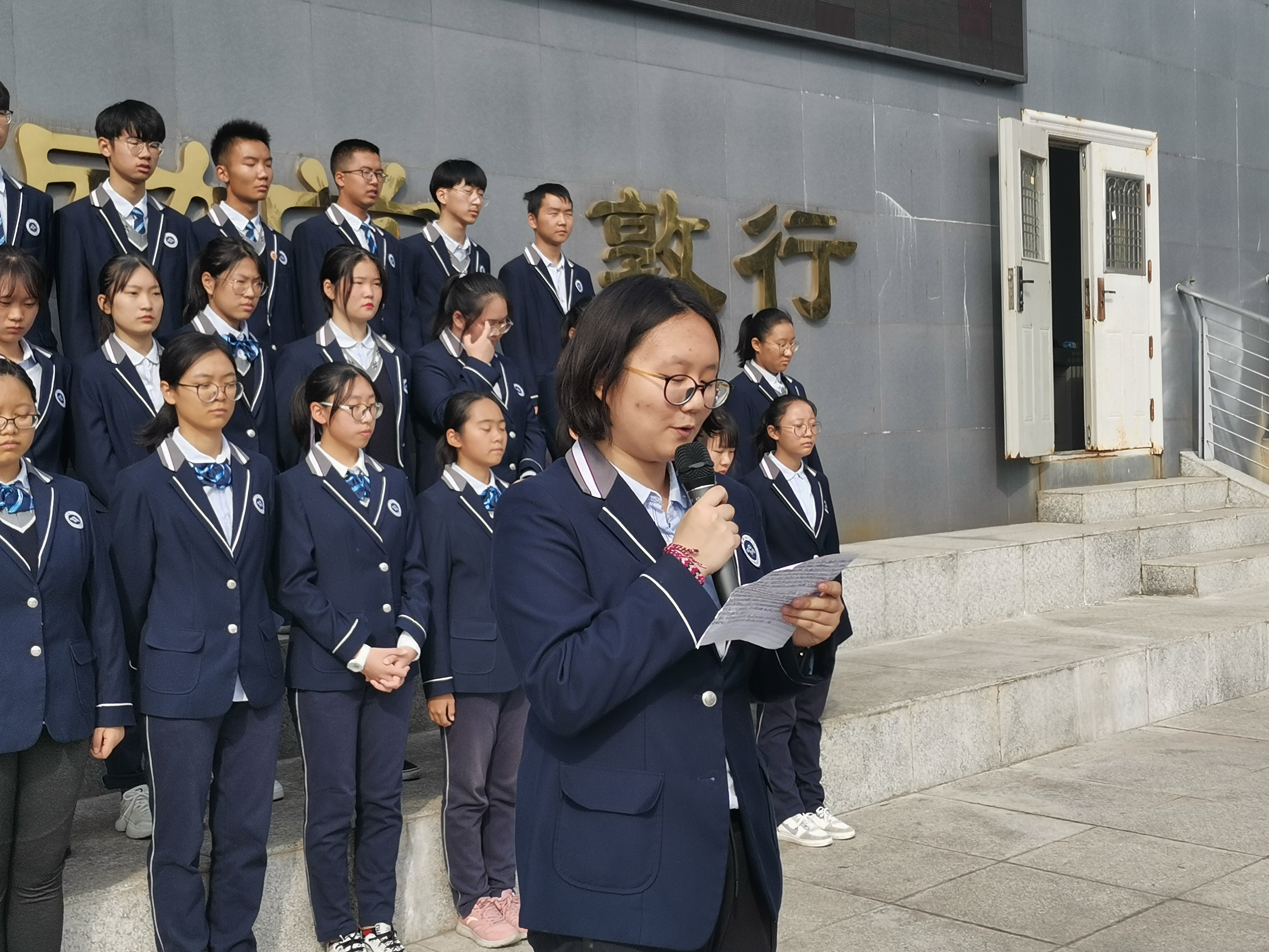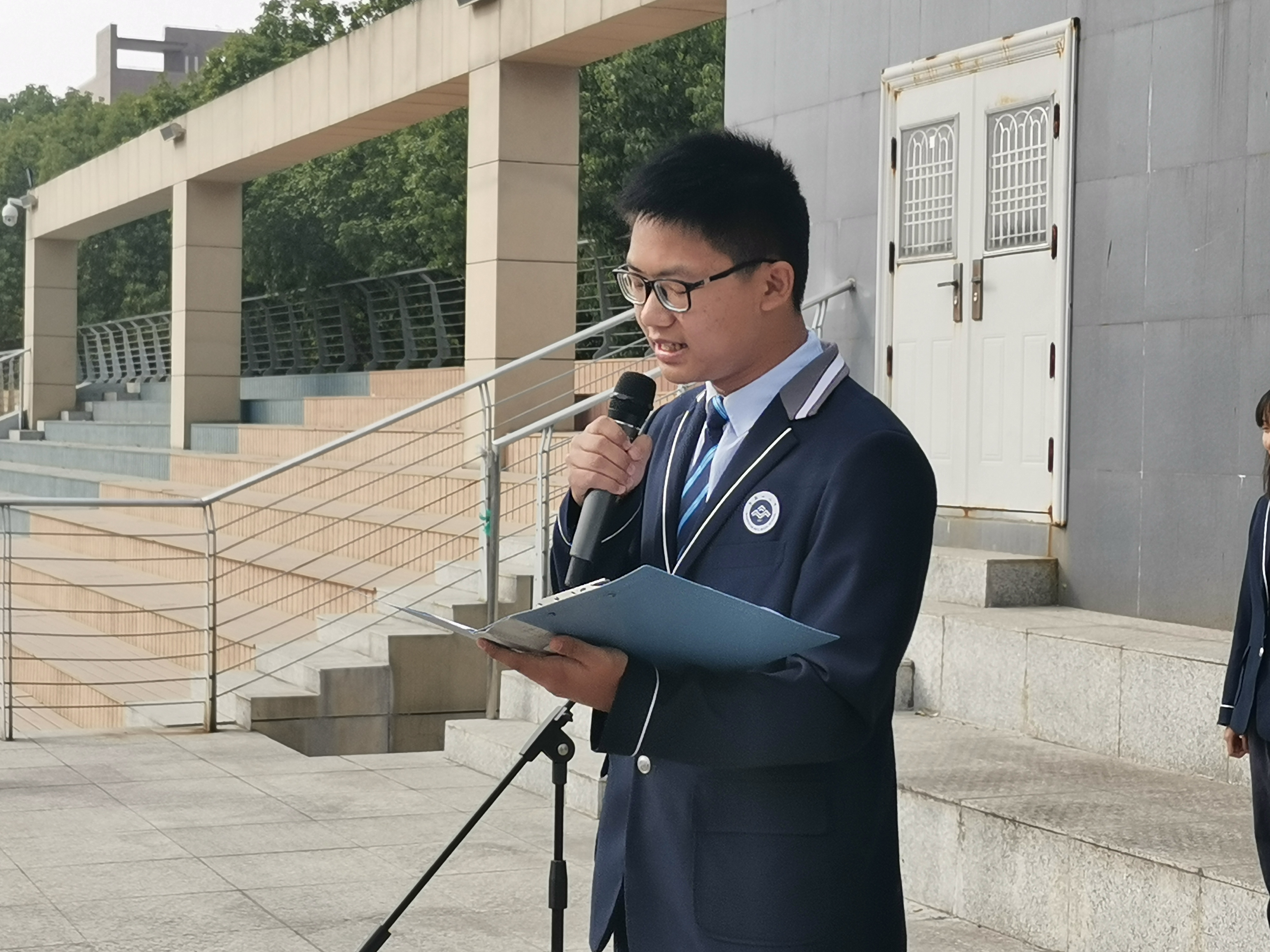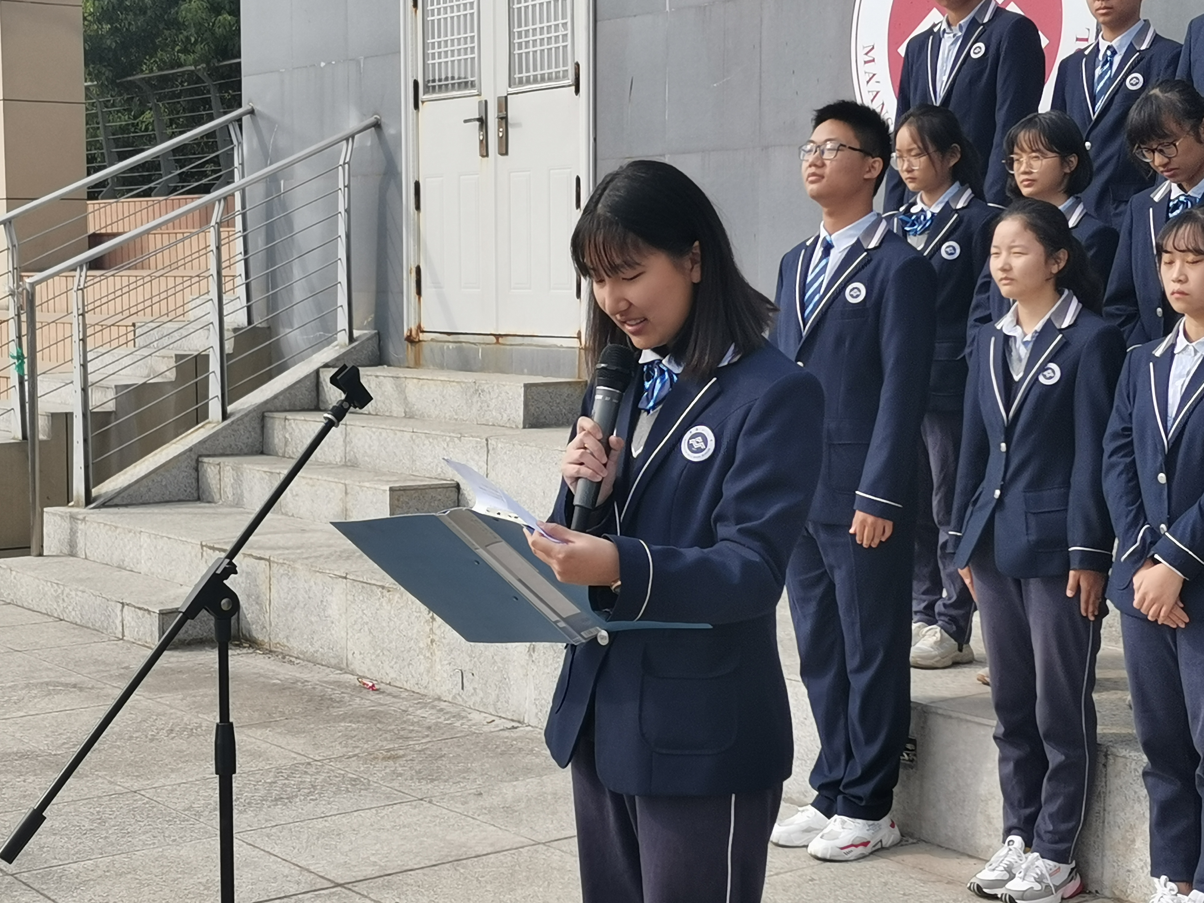 在這秋風颯爽、金(jīn)桂飄(piāo)香的十月,很榮幸由91视频网站高二(èr)17班同學來領唱(chàng)國歌,我是今(jīn)天的主持人, 曹憶凡。