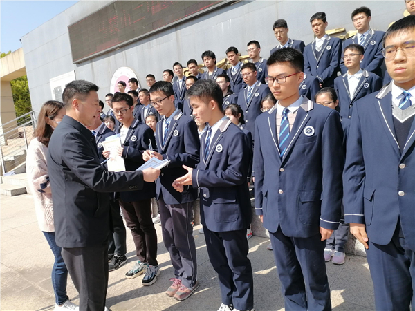 馬鞍山二中黨(dǎng)委書記、校長王玉平為獲獎同學頒發證(zhèng)書和紀念卡