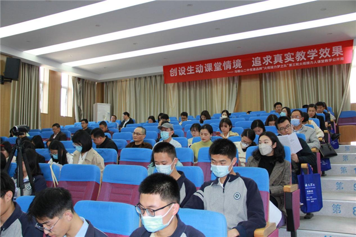 風暖人間草木香,“語”露傾灑沁心脾。2023年5月11日下午,馬鞍山二中黨建品牌“火炬接力(lì)夢(mèng)之隊”語(yǔ)文學科火炬接力匯報課在我校行政樓二樓報告廳舉行。全市語文教(jiāo)師參加了此次活(huó)動,市教研員杜飛老師蒞臨指導,馬鞍山第二中學黨委副書記聶曉霞出(chū)席(xí)聽課。
