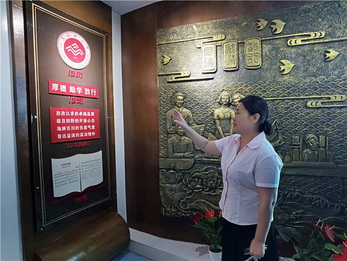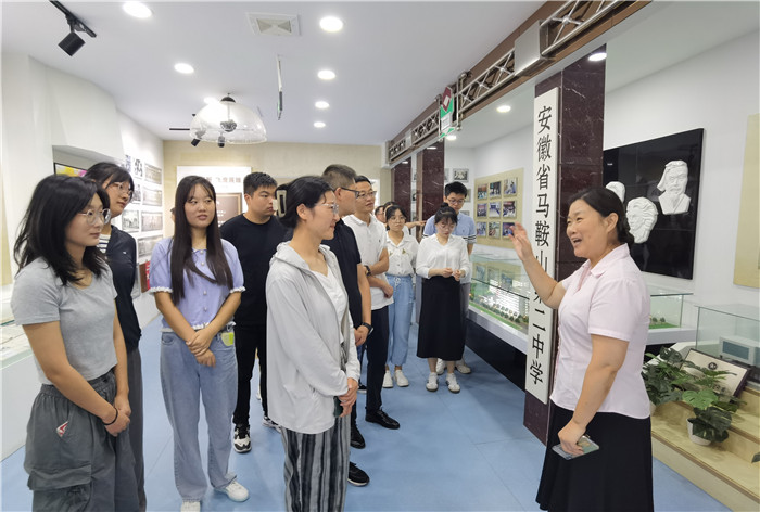 集體合影後(hòu),聶曉霞副(fù)書記帶領新教師參觀了校史館,她詳細地介紹了二中的校園文化、發展曆程、名師隊伍、學生風采以及優秀(xiù)校友。厚(hòu)重的曆史痕跡展現了(le)馬二的底蘊,新進教師們認真聆聽,細(xì)致感受。