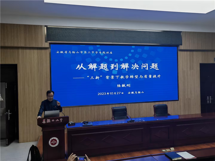 江蘇無錫梅村高級中學副校長、生物(wù)特級(jí)教師陸敏剛作題為《從解題到解決問題——“三新”背景下教學(xué)轉型與質量提升》的專家報告。他(tā)特別強調:在新的高考背景下,要以核心素養為導向,優化課堂教學;要(yào)重視情景創設;要重點(diǎn)考查學生運用所學(xué)知識分析問題和解決問題能力。
