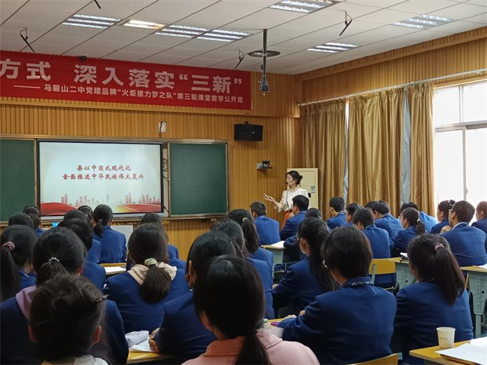 優化教學方式,深入落實“三新”。10月26日下午,在“火炬接力夢之隊”第三輪火炬傳遞人課堂教學公開(kāi)周活動中,我校政治組張立華、陶源兩位教師分別開設了《堅持(chí)“兩個毫(háo)不動搖”》和《思維的含義與特(tè)征》兩節教學(xué)示範課。馬鞍(ān)山二中校長王玉平、副校長慶曉以及全市各高(gāo)中政治教師參與聽(tīng)課指導。