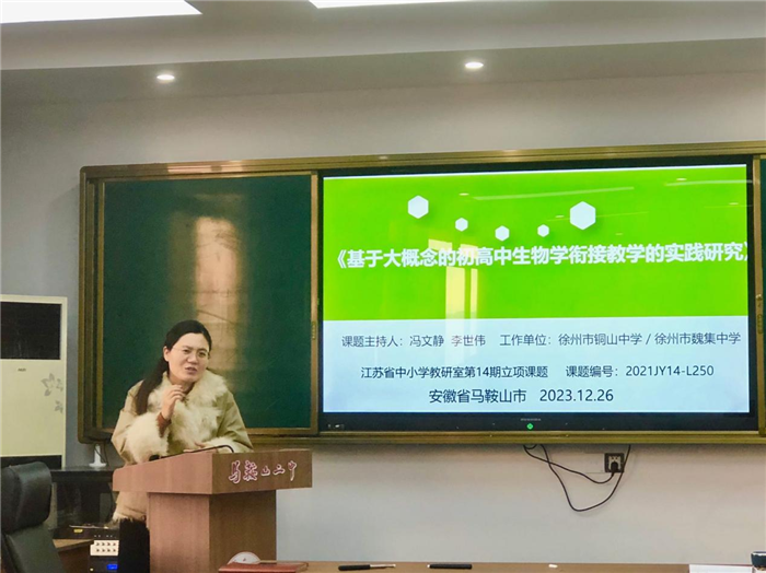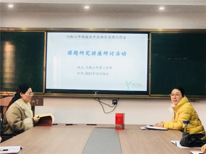 為切實發揮名師示範、引領和輻射作用,加強教師間的互動交流,立足(zú)於(yú)教學實際,深入開展課題研究,12月26日上午,馬(mǎ)鞍山市楊威高中生物學名師工作室課題(tí)研究講座在行政樓五樓會議室召開。研討活動由楊威老師主持,徐州市學科帶頭人(rén)馮文靜老師主講,陳雅麗、黃振鋒、劉美玲、胡金蓉、譚正宏、戴俊賢、袁(yuán)曉娟、陳文龍等工作室成員(yuán)以及市(shì)二中生物組課題組成員參加會議。