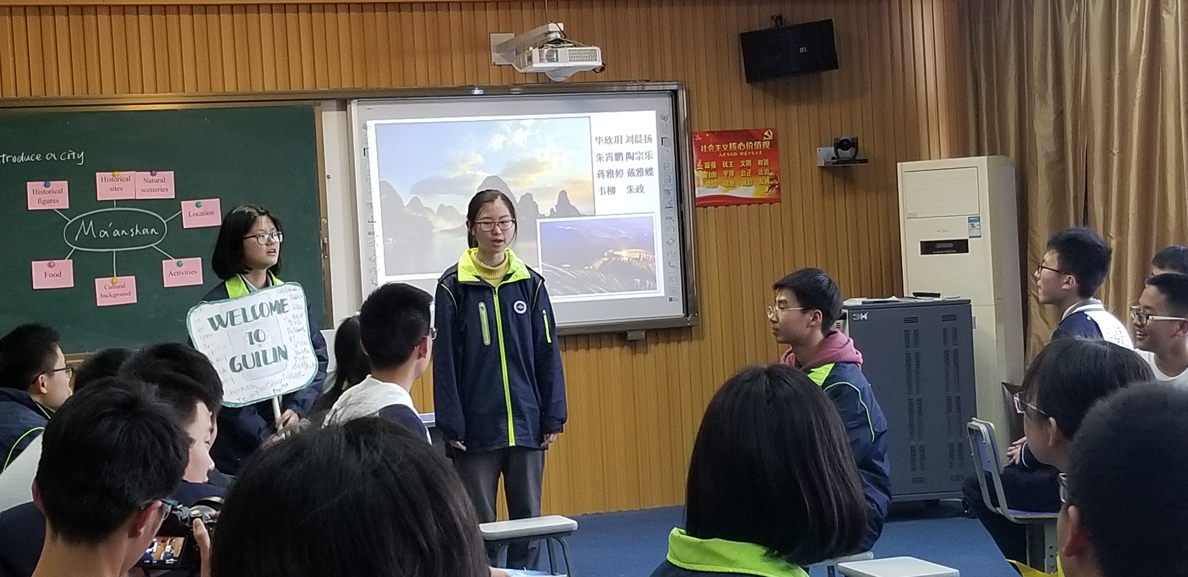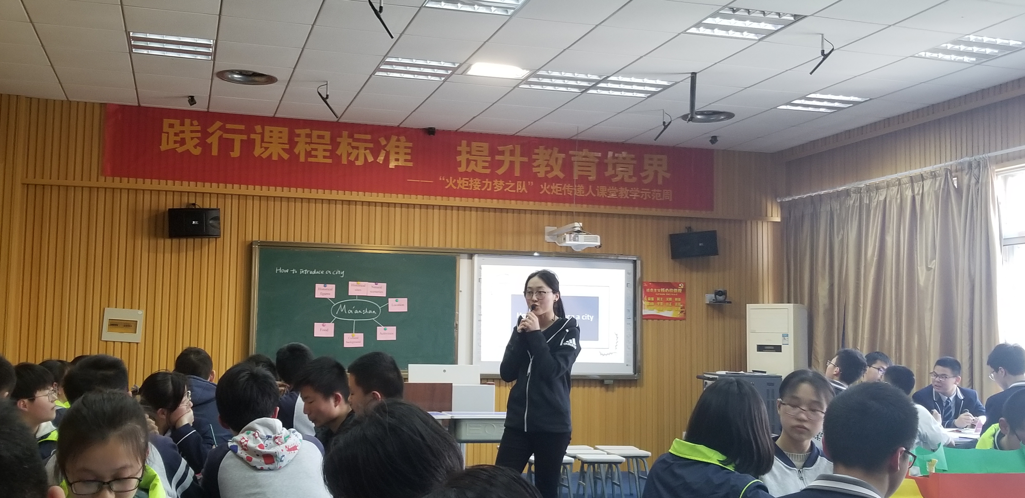 盛涵(hán)老師為(wéi)大家帶來的是一節(jiē)活動展(zhǎn)示課——How to introduce a city,她(tā)有效地利用自己拍攝的視(shì)頻作為導入,並通過mind map幫助學(xué)生們搭建知識框(kuàng)架(jià)。在小組展示部分,來自高一(9)班的同學(xué)們神采飛揚,發揮了他們驚人(rén)的想象力,展現(xiàn)出了他們的(de)英語素養!活動展示通過小組對話的形式呈現,七個(gè)小組(zǔ)以其流(liú)利的英語口語、豐富的對話形式、生動(dòng)入微的(de)表演、別致的道具、默契的合作以及恰到好處的音樂配合震撼全場。這堂課氣氛活躍,高潮(cháo)迭起,給學生們提供了展示的舞台,培養了他們的思維品質。