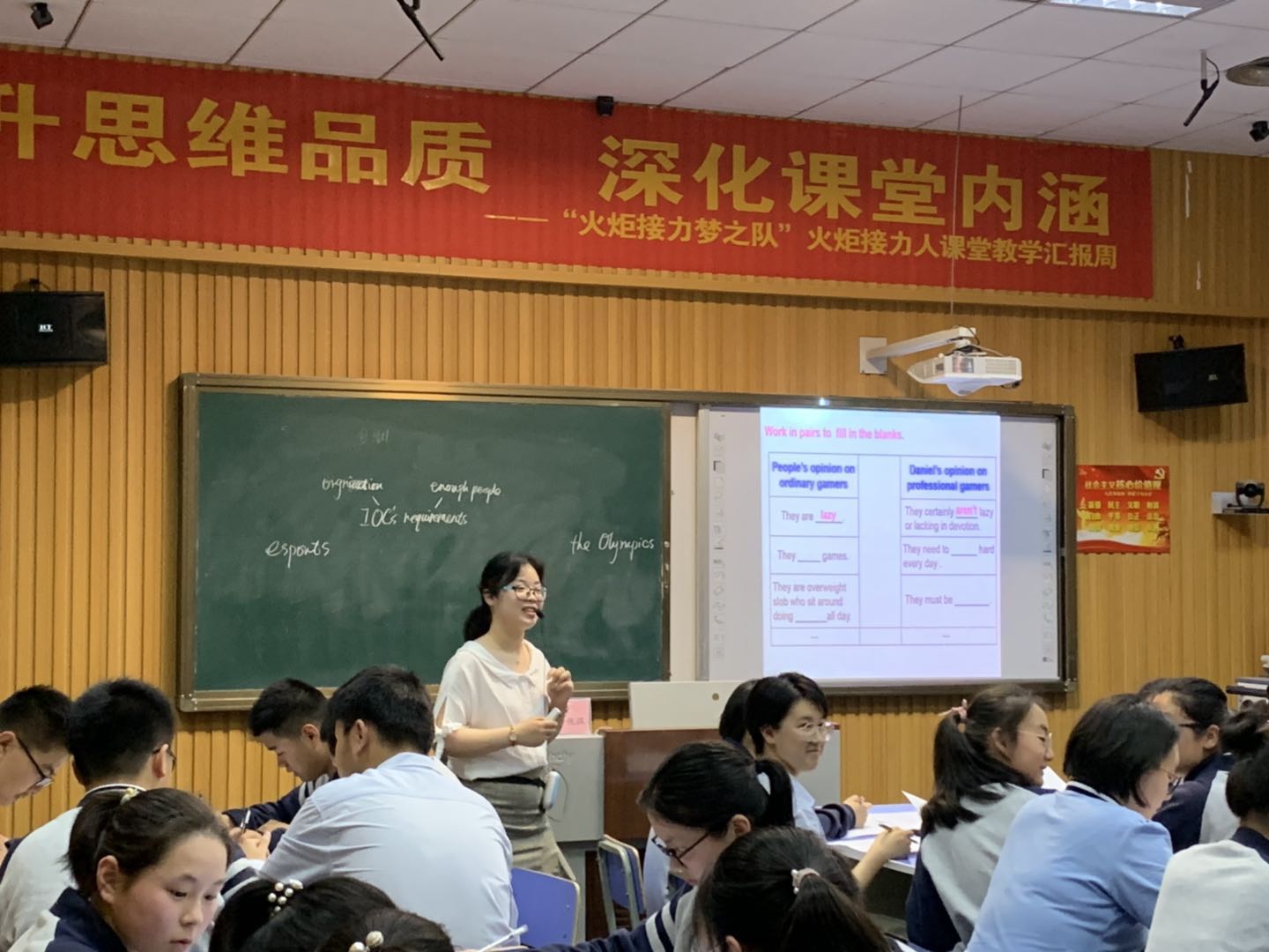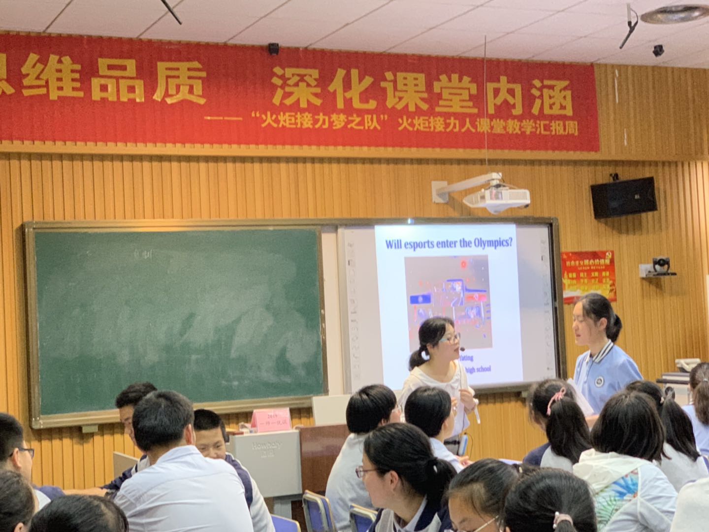 第(dì)一節(jiē)是由方亞(yà)婷(tíng)老師帶來的一堂讀寫課,不同(tóng)往常的是,她(tā)還加入了聽說環節,使得學生的聽、說、讀、寫、看五項語言技能(néng)得到充分訓練與加強。本節課的主題圍繞“Esports”(電子競技)展開,探討該運動是否可(kě)以被納入奧運會(huì)項目,話題新穎,卻貼近學生。閱讀材料(liào)雖內容上稍有難度,但在方亞婷老師的引導下,材料中不同觀點的相互碰撞也激發了學生的思想火花。之後通過小組合作寫作(zuò),學生(shēng)的思維(wéi)能力和語言能力得到再次強化,課(kè)堂目標達成。