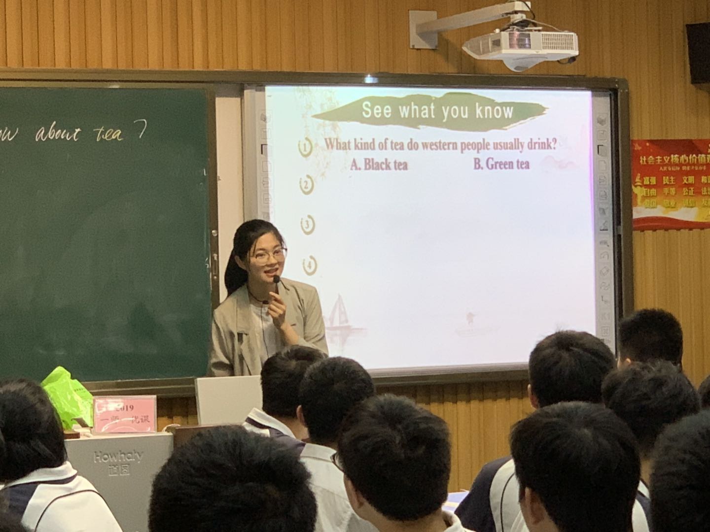 第二節是(shì)由計珂老師帶來的(de)活動課,圍繞中國人最熟悉的“Tea”(茶)展開,探討了中西方茶文化的不同,再一次強調了“茶葉”“喝茶”對於中國人的重要性。計珂老師依托古典名(míng)著《紅樓夢》帶領學生探討古人如何用茶以及茶(chá)的功能,而課上學(xué)生的表演使得本節課妙趣橫生。之後又以一篇短文展示出中西(xī)方在喝茶方麵的不同之處,學生通過合作找出不同點並(bìng)進(jìn)行闡(chǎn)釋,最(zuì)後總結得出本節課的主題——茶文化在中國的地(dì)位及其對中國人深遠(yuǎn)的影響。