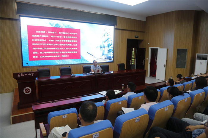 校黨委委員、副校長王躍(yuè)兵從深入學習領會(huì)習近(jìn)平總書記關(guān)於黨的曆史的重要論述,充分認(rèn)識開展黨史學習教育的重大意義;認真研讀黨史基本著作,全(quán)麵了解中國共產黨百年奮鬥的光(guāng)輝(huī)曆程和曆(lì)史性貢獻;深刻把握開展(zhǎn)黨史學習教育的(de)重點;開展(zhǎn)黨史學習教育,要學懂弄(nòng)通做實習近平新時(shí)代中國特色社會主(zhǔ)義思想,增強“四個意(yì)識(shí)”、堅(jiān)定“四個自信”、做到“兩個維護(hù)”等四個(gè)方麵,為大家做黨史學習教育專題宣(xuān)講。